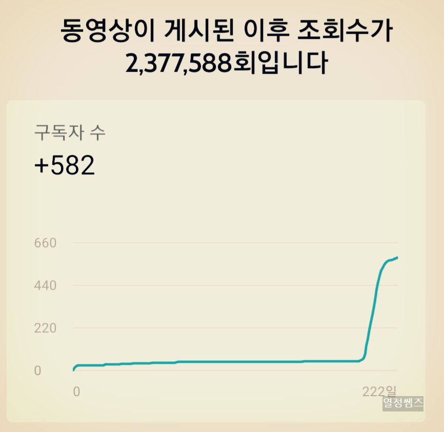 유튜브 쇼츠 떡상 230만 뷰를 기록했습니다.