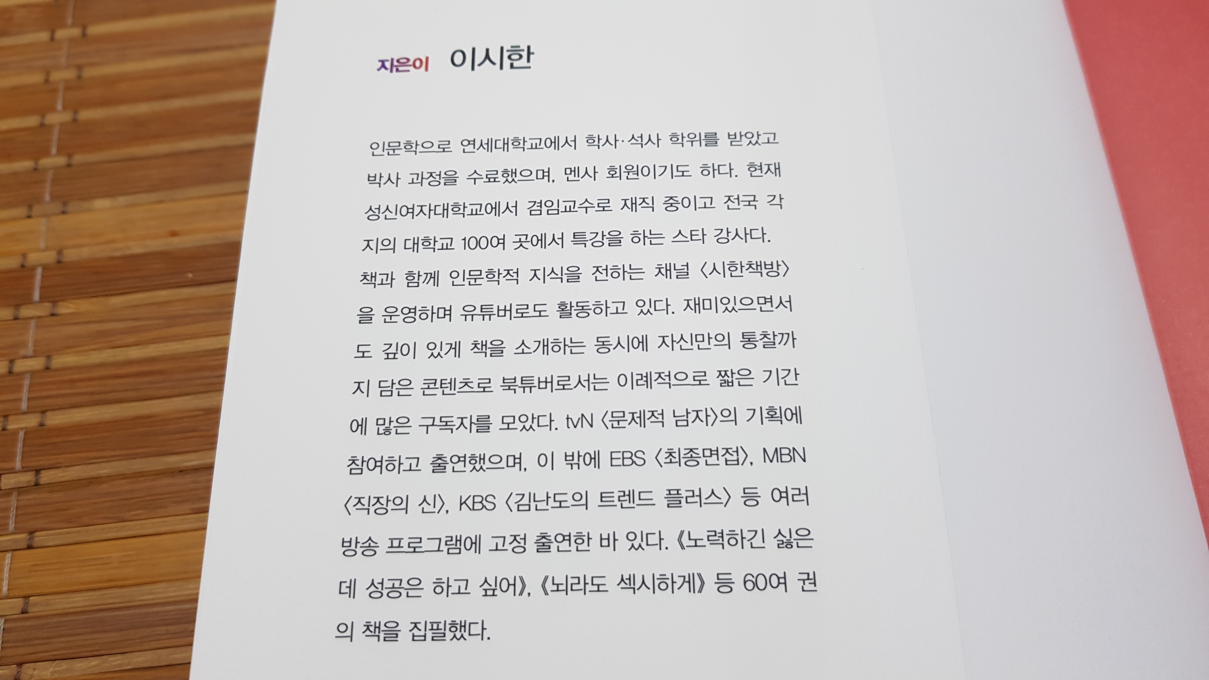 작가 이시한은 시한책방으로 북유튜버로 활동을 하고 있다고 한다.