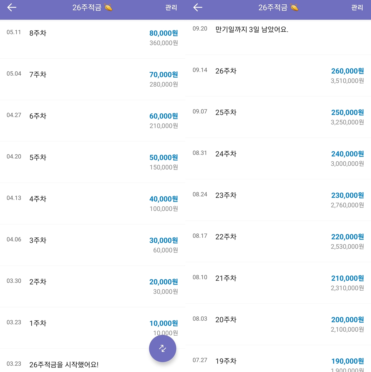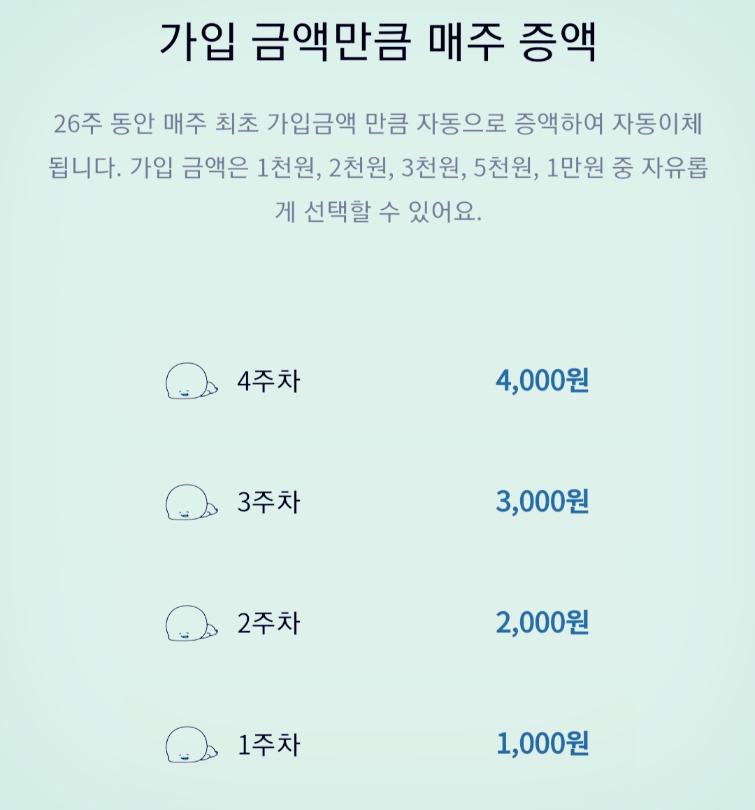 26주 동안 매주 최초 가입 금액만큼 자동으로 증액하여 자동 이체된다고 합니다.