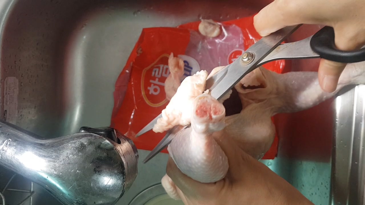- 백숙을 만들 닭의 기름기를 제거합니다. 가위로 쉽게 잘라낼 수 있기에 저처럼 요잘못도 간단하게 손질을 할 수 있답니다.