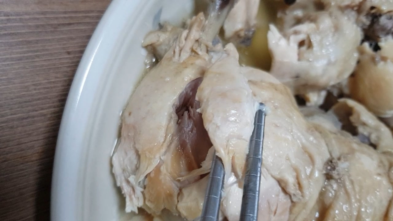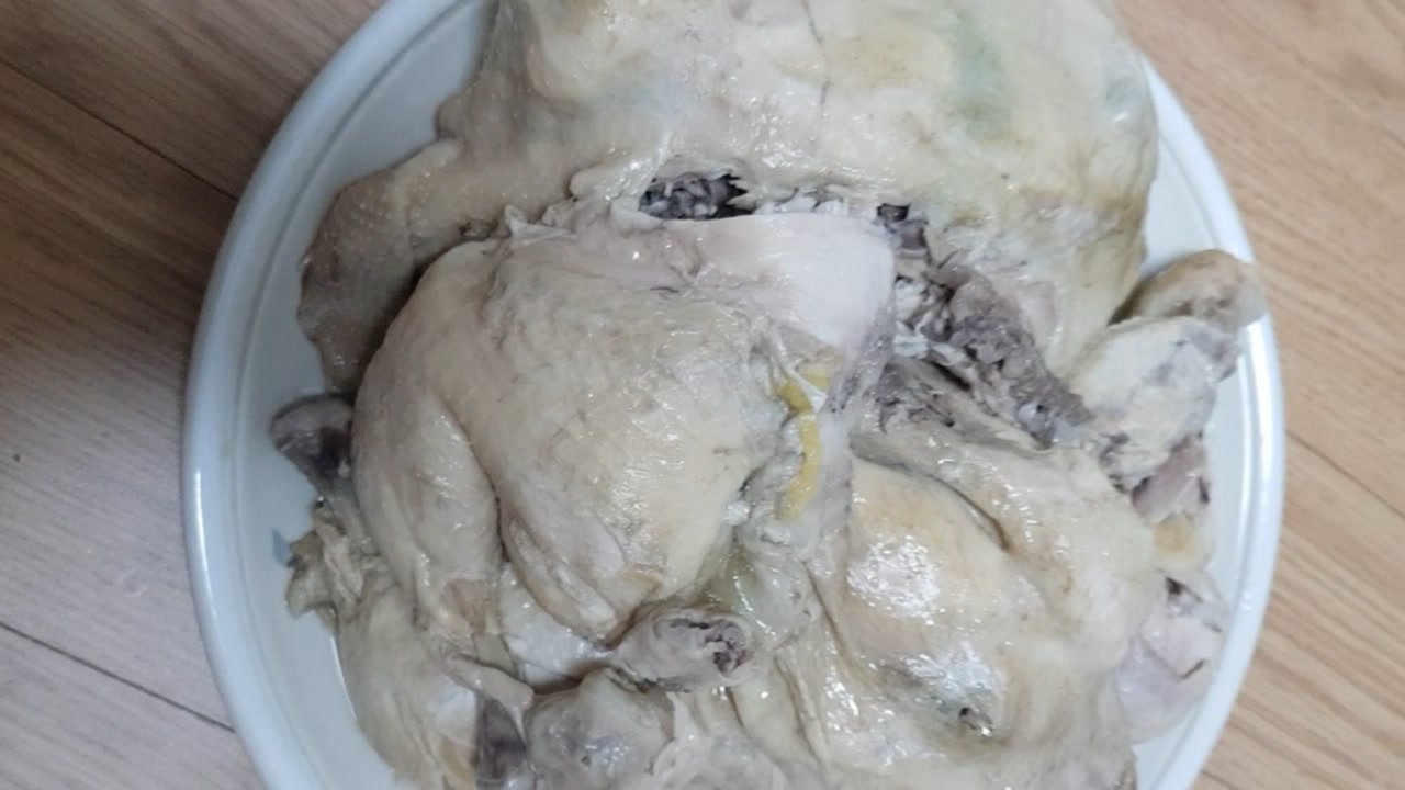 전기밥솥에 닭을 삶으면 살이 부드럽습니다.