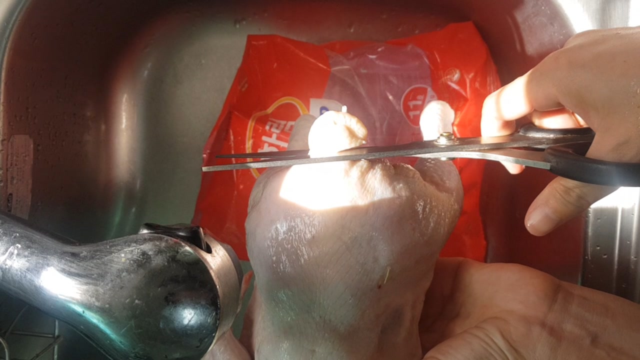 - 닭털이 안 빠진 것이 있다면 빼줍니다.
