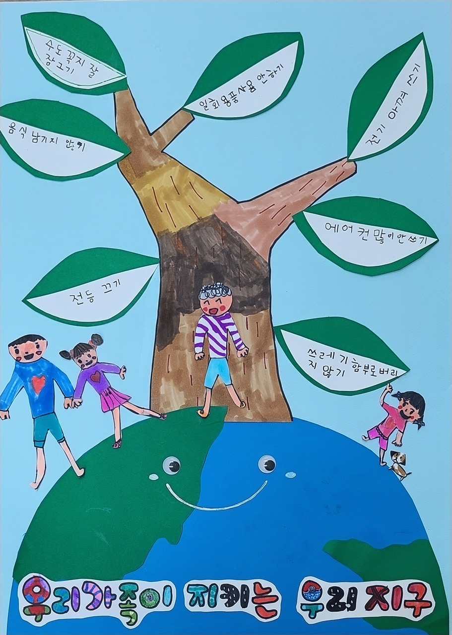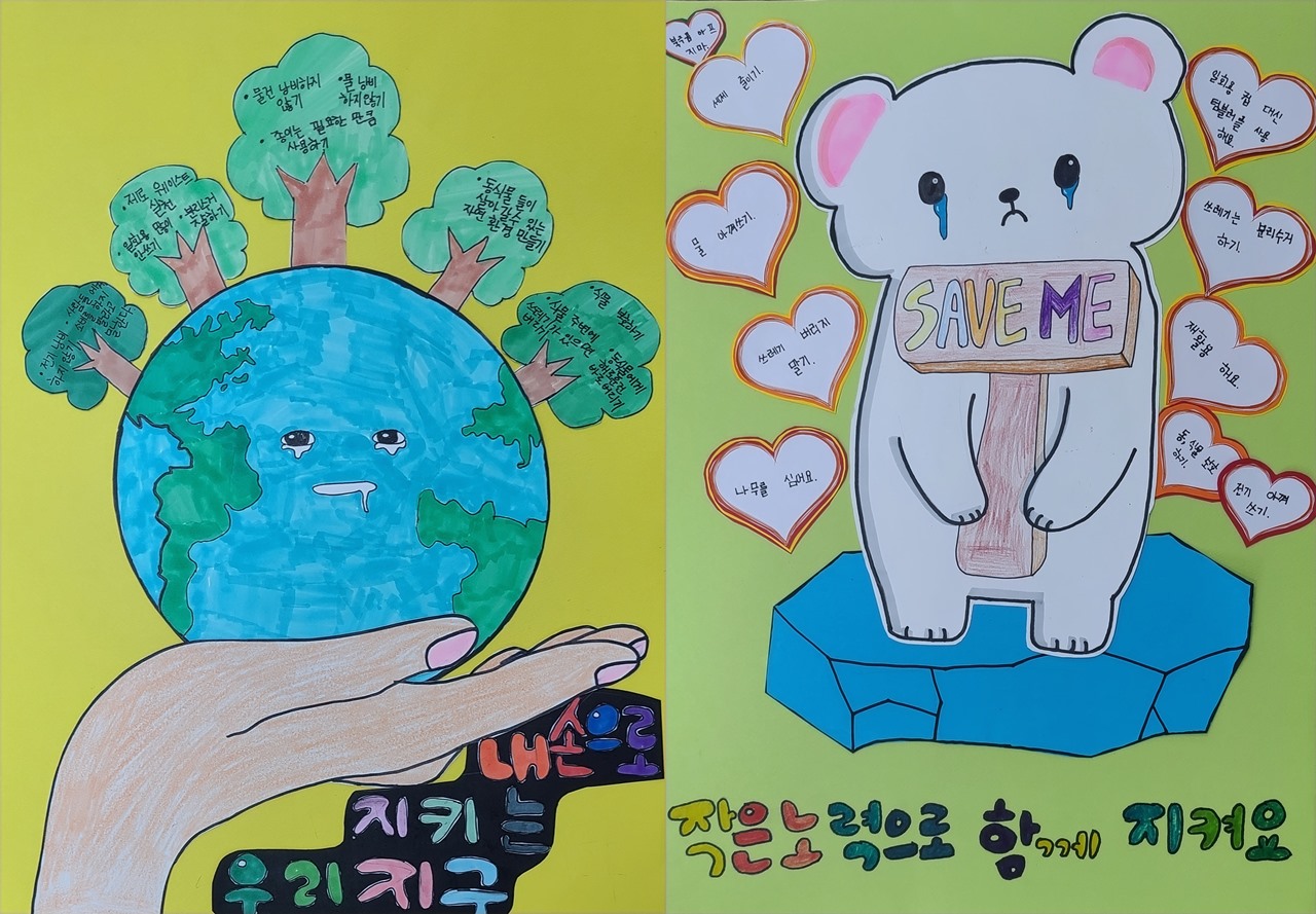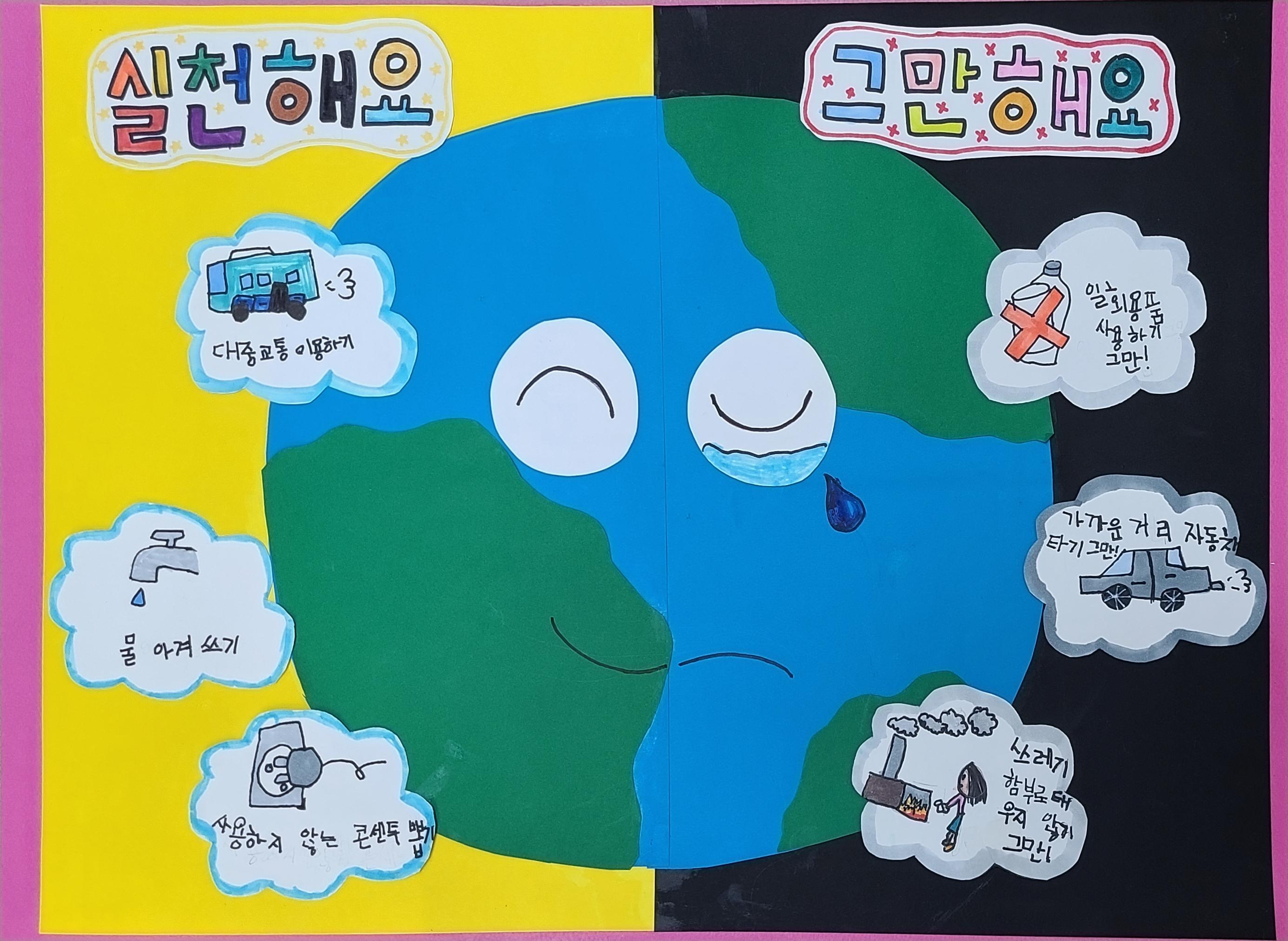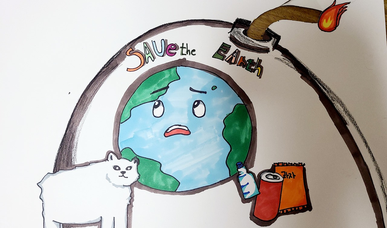 중학생 딸아이에게 인터넷의 환경 포스터를 보고 그리라고 하니 귀찮다며 대충 그립니다.