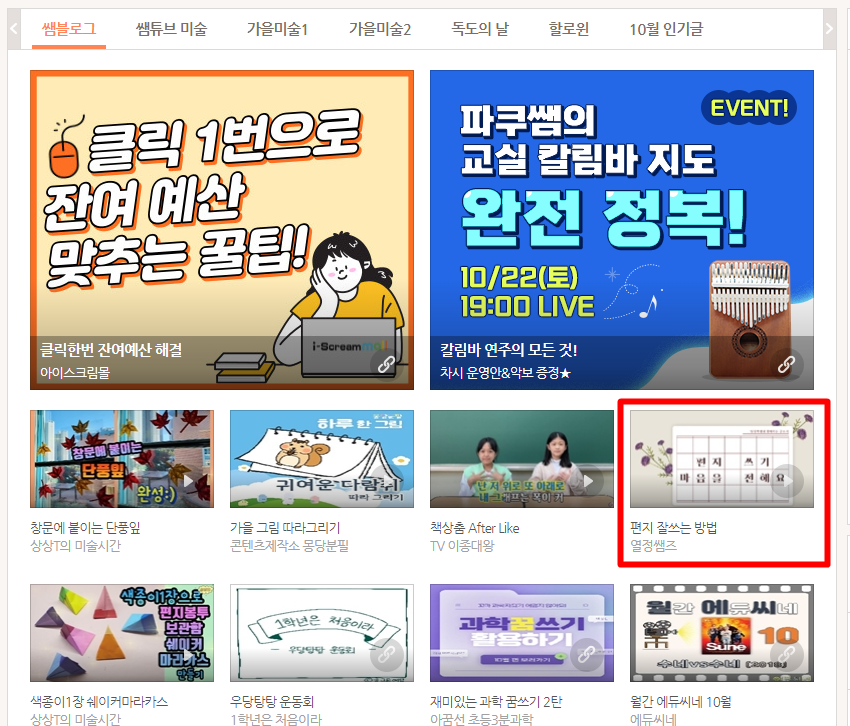 초등아이스크림 쌤블로그에 10월 14일날 공개를 하여서 주말부터 오늘까지 나와 있습니다. 이 영상이 메인에서 내려가면 다시 쌤블로그에 다른 영상을 공개해야겠습니다.