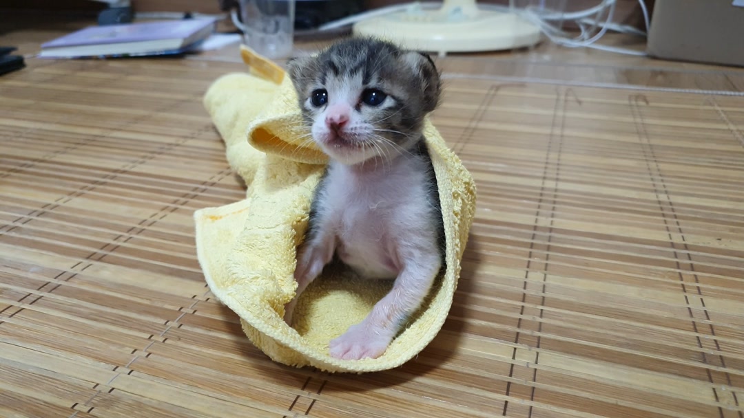 태어나자마자 쓰레기봉투에 버려져서 구조, 입양된 아기 고양이 행복이의 생후 32일-37일 귀염뿜뿜 모습이에요. 거실에 아기고양이방으로 울타리를 설치했어요. 울타리 높이는 35cm. 분유를 타올