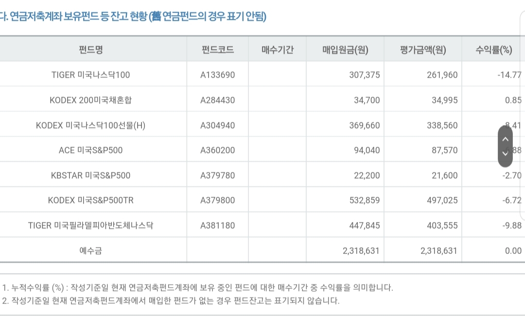 다. 연금저축계좌 보유펀드 등 잔고 현황