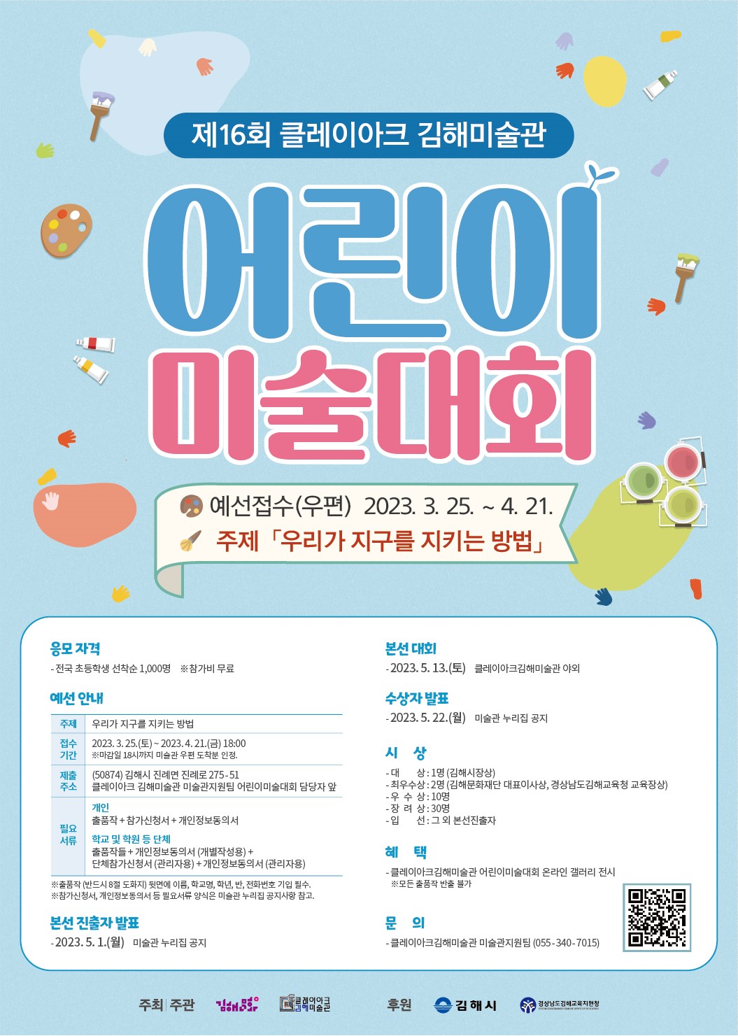 3) 제출주소: (50874) 김해시 진례면 진례로 275-51 클레이아크김해미술관 미술관지원팀 어린이미술대회 담당자 앞