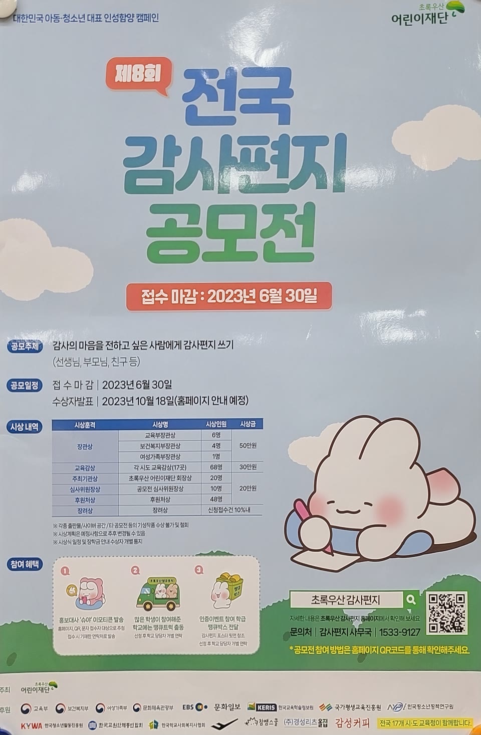 제8회 전국감사편지공모전(초록우산어린이재단, 6/30까지, 발표 10월 18일)