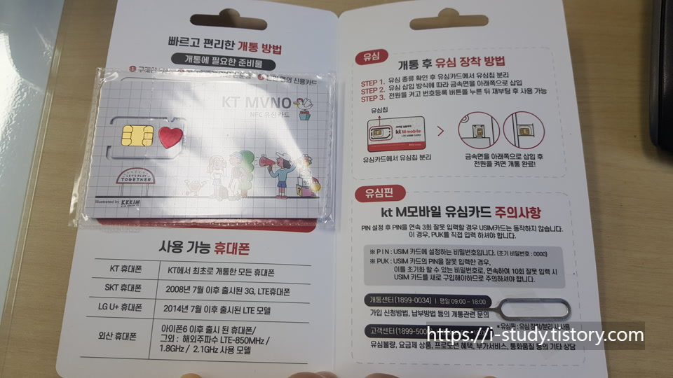 케이티 엠 알뜰폰이라 유심을 편의점이나 온라인에서 살 수 있습니다.