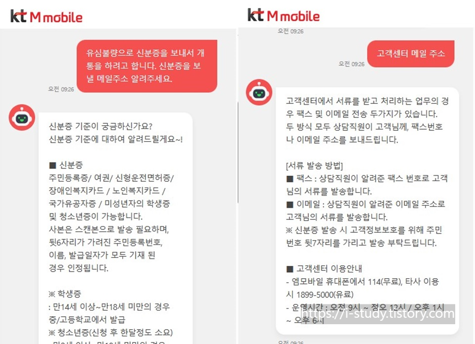 유심 개통을 위해 고객센터에 전화를 했습니다. 그랬더니 유심 개통을 위해서 본인 신분증이 필요하다고 합니다. 신분증을 촬영(복사)하여서 팩스나 이메일로 보내야 개통이 됩니다.