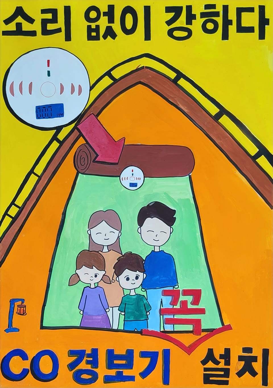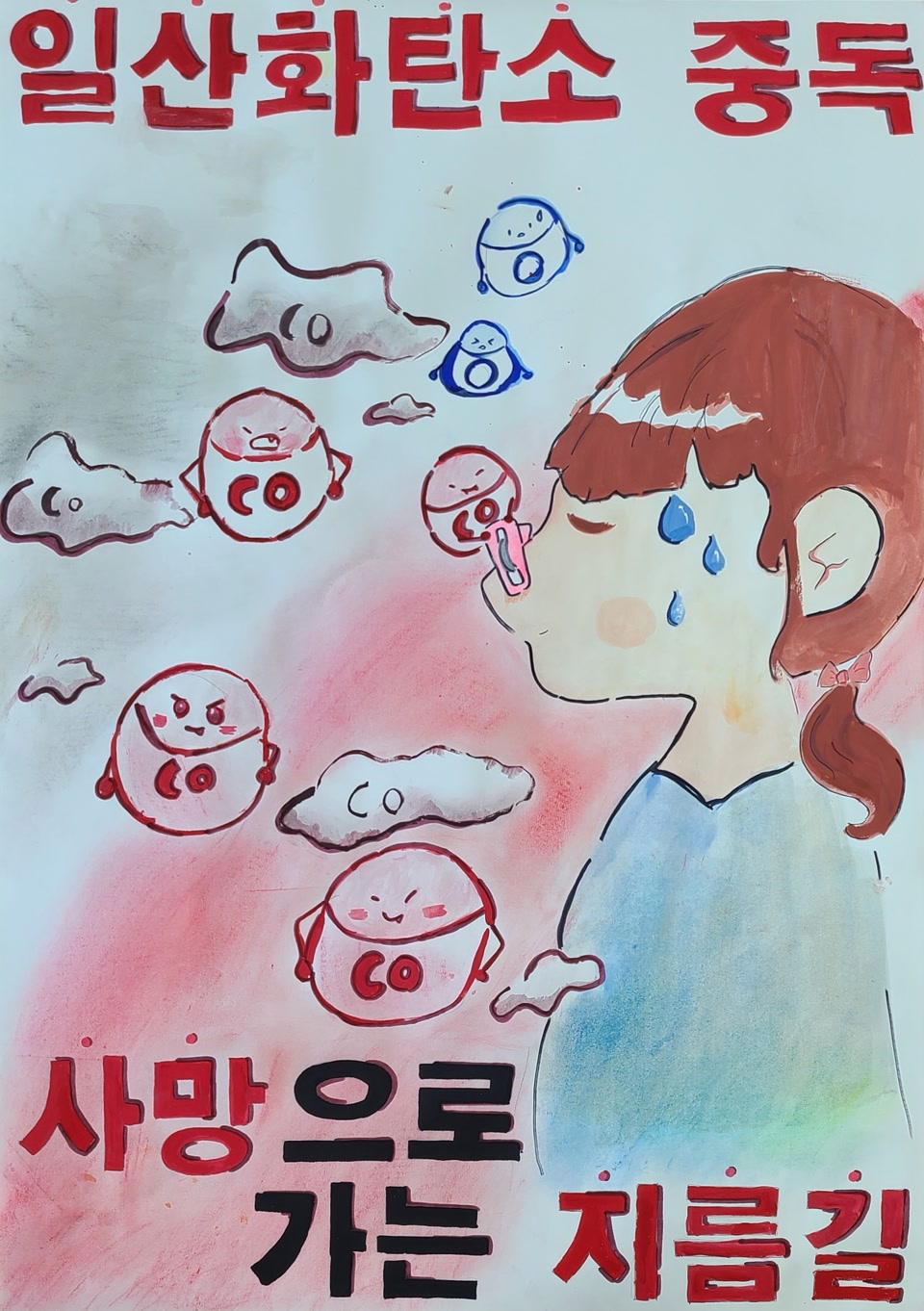 아이들과 일산화탄소 중독 예방 포스터를 만들면서 쉽지 않았지만 이틀만에 완성을 했습니다.