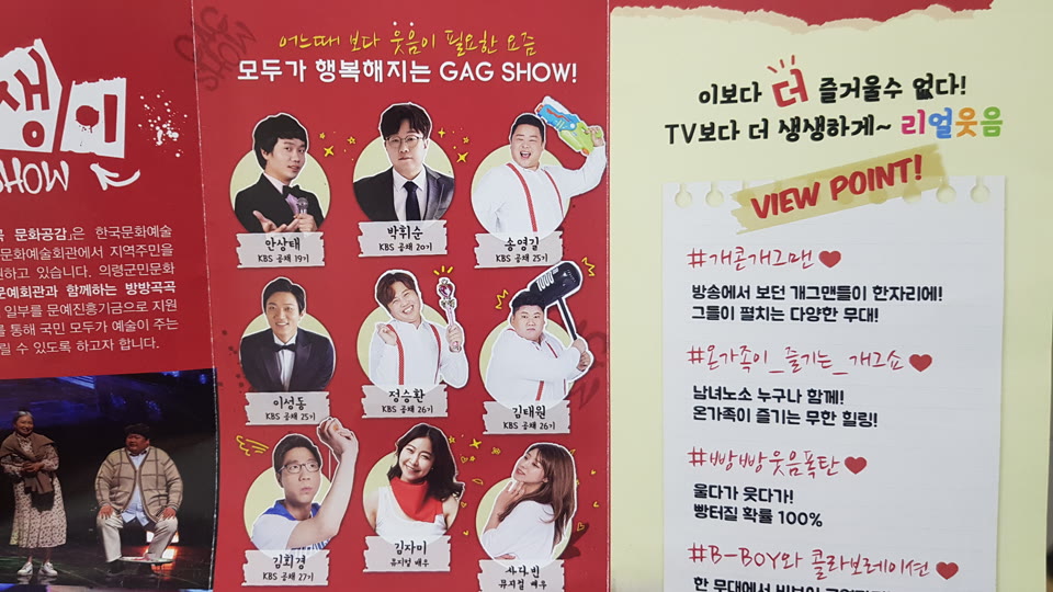 김밥과 라면을 간단하게 먹고 방방곡곡 문화공감 개그쇼 개그쟁이를 보러 갔습니다.