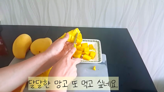 공부를 위해서 망고를 자르는 법을 영상을 찍었어요. 요리에 관심이 많고 영상을 찍어서 공부하고 싶어서요. 일석이조이네요.