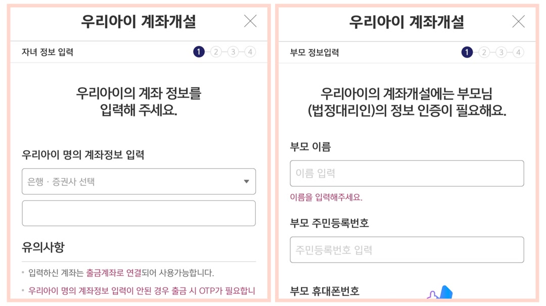 - 미성년자 은행 또는 증권계좌(선택)