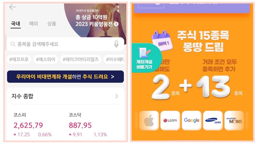 '우리아이 비대면계좌 개설하면 주식 드려요'가 나왔습니다.