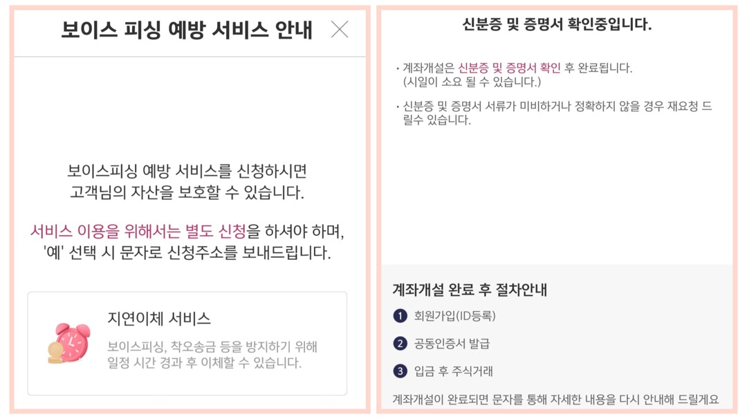 계좌개설은 신분증 및 증명서 확인 후 완료가 된다고 합니다. 비대면 신청을 하면 시일이 소요될 수 있다고 합니다.