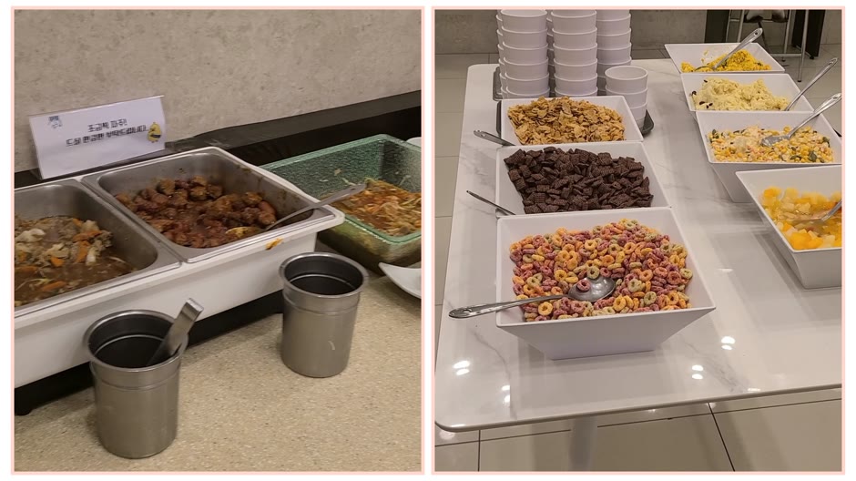 무료가 맞은지 의심스러울 정도로 괜찮습니다. 1인용 자리도 있어서 부담 없이 조식을 즐길 수 있습니다. 아침잠이 많은 딸아이는 둘째날 조식은 패스했습니다.