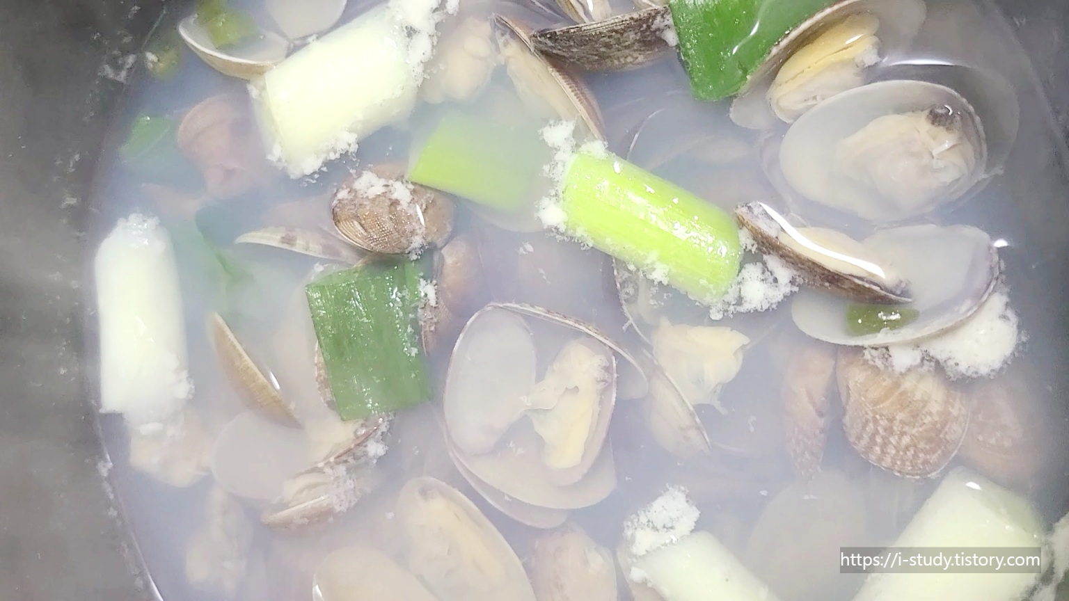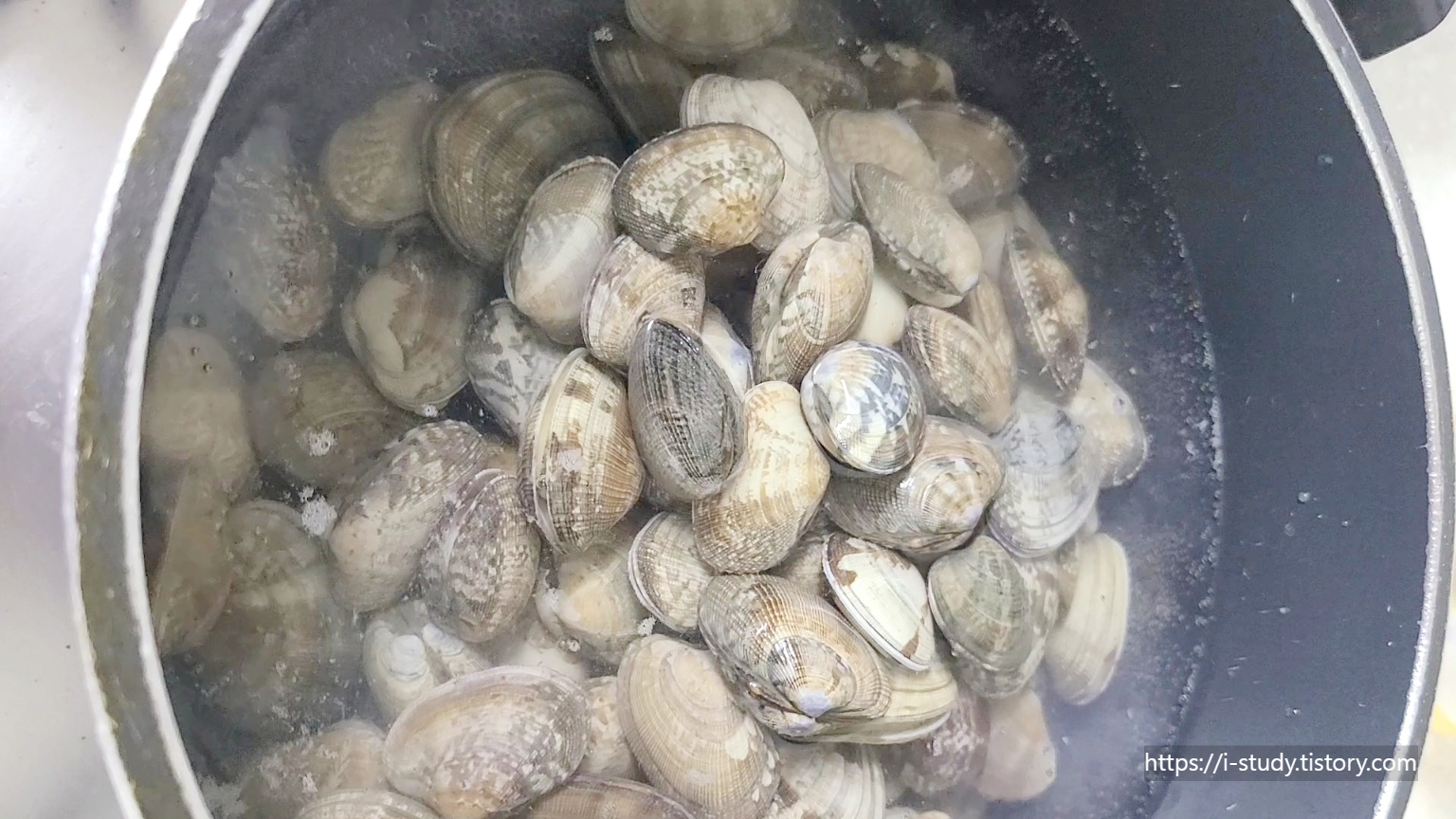 조개탕 끓이는 방법 1분 꿀팁입니다. 조개탕을 끓이는 것은 어렵지 않답니다. 해감만 잘해서 끓는 물에 넣어서 입이 벌어지면 된답니다.