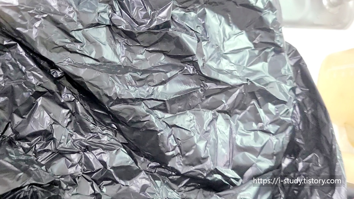 해감을 할 때는 갯벌과 비슷한 환경을 만들어주기 위해서 검은 봉지로 덮어주었습니다.