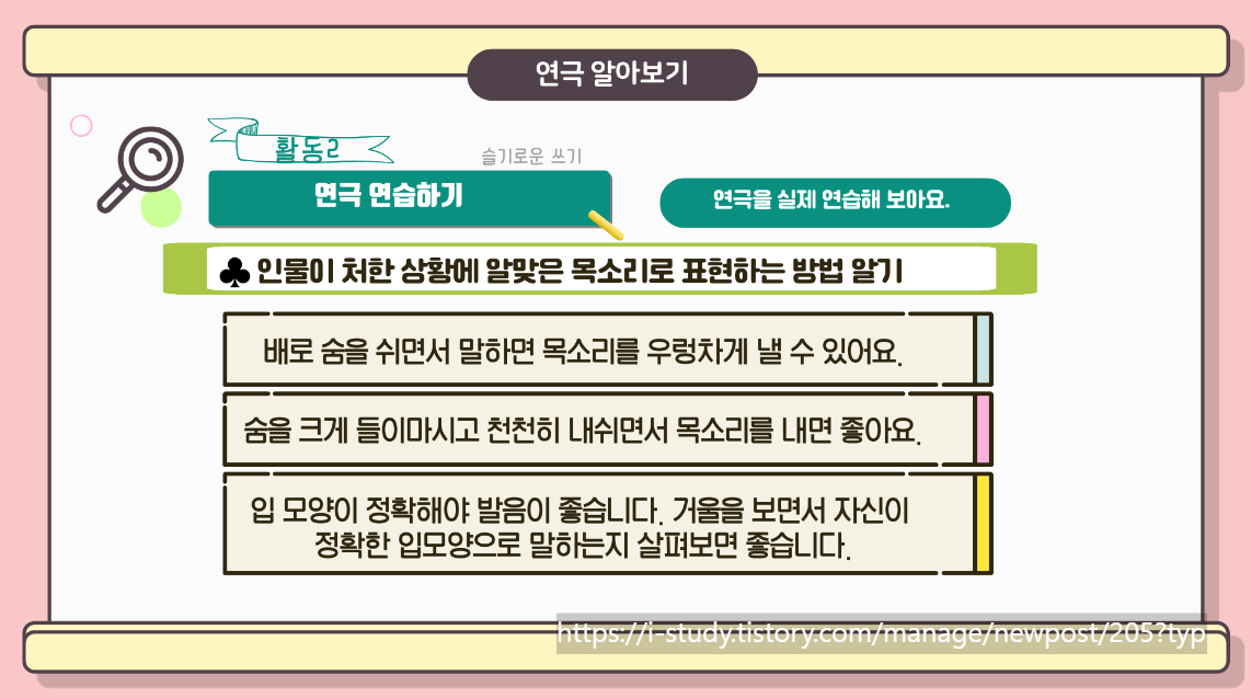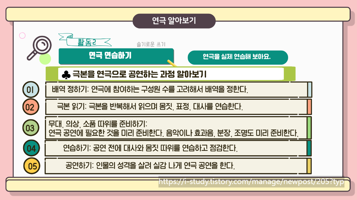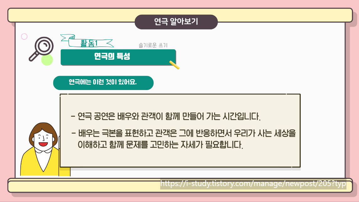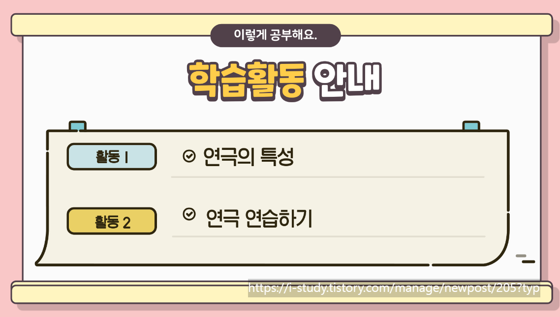 즐거운 마음으로 연극에 대해 공부를 해 봅시다.