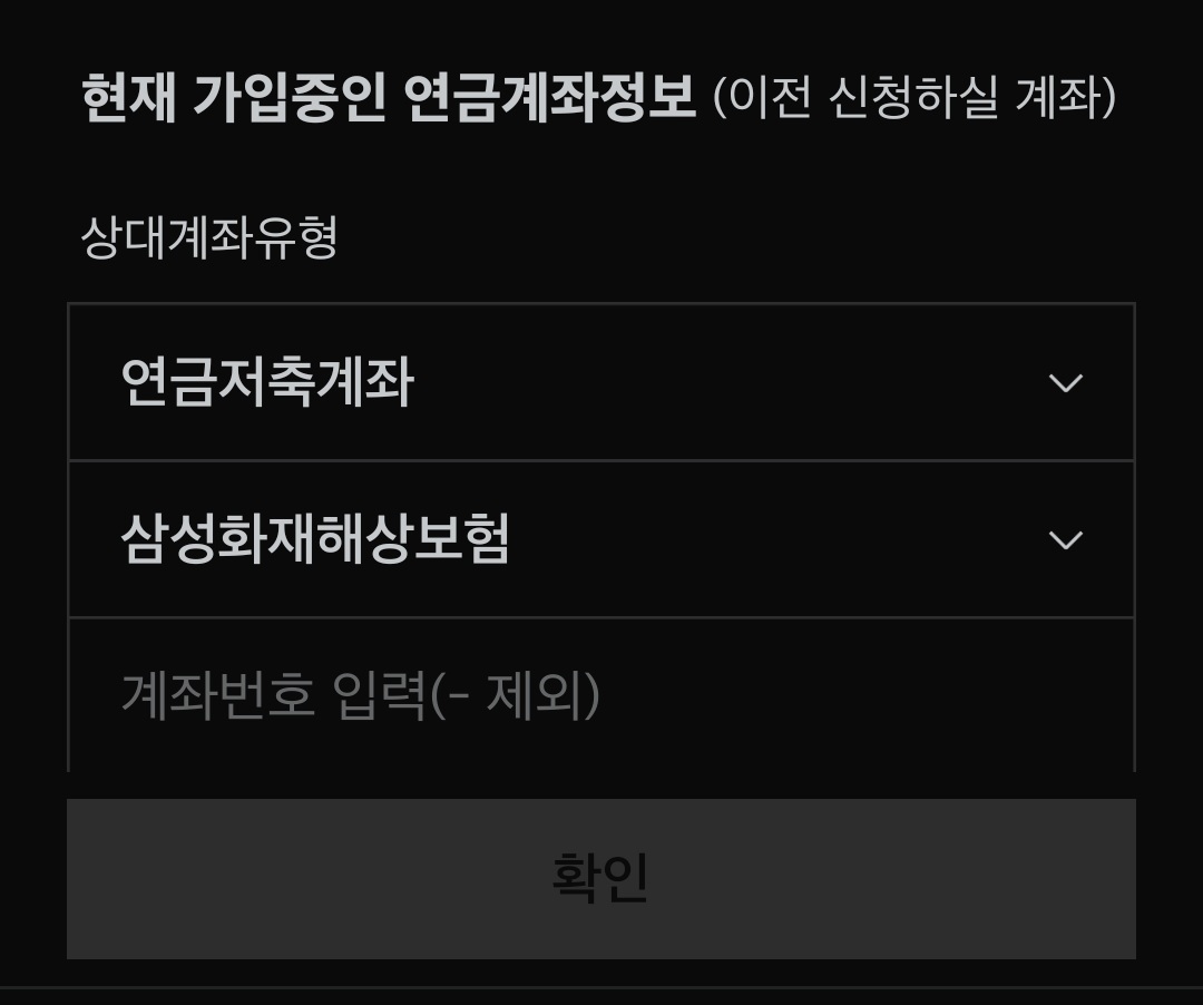 연금을 이전하기 위해서는 기존에 들어있던 연금보험사와 계좌번호를 알아야 합니다.