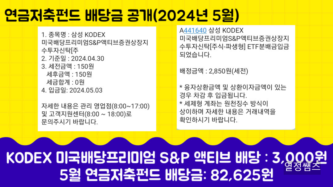 KODEX 미국배당프리미엄S&P액티브 ETF 5월 배당금은 3,000원입니다.