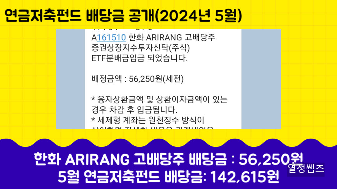 5월 연금저축펀드 배당금을 142,615원을 받았습니다. 저도 정리를 하다가 깜짝 놀랐습니다.