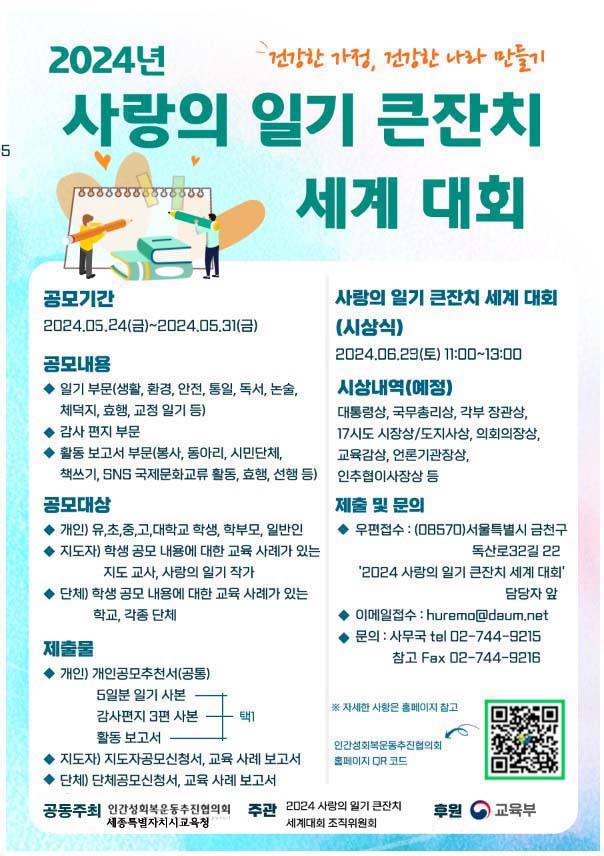 2024. 사랑의 일기 큰잔치 세계대회 공모요강입니다.