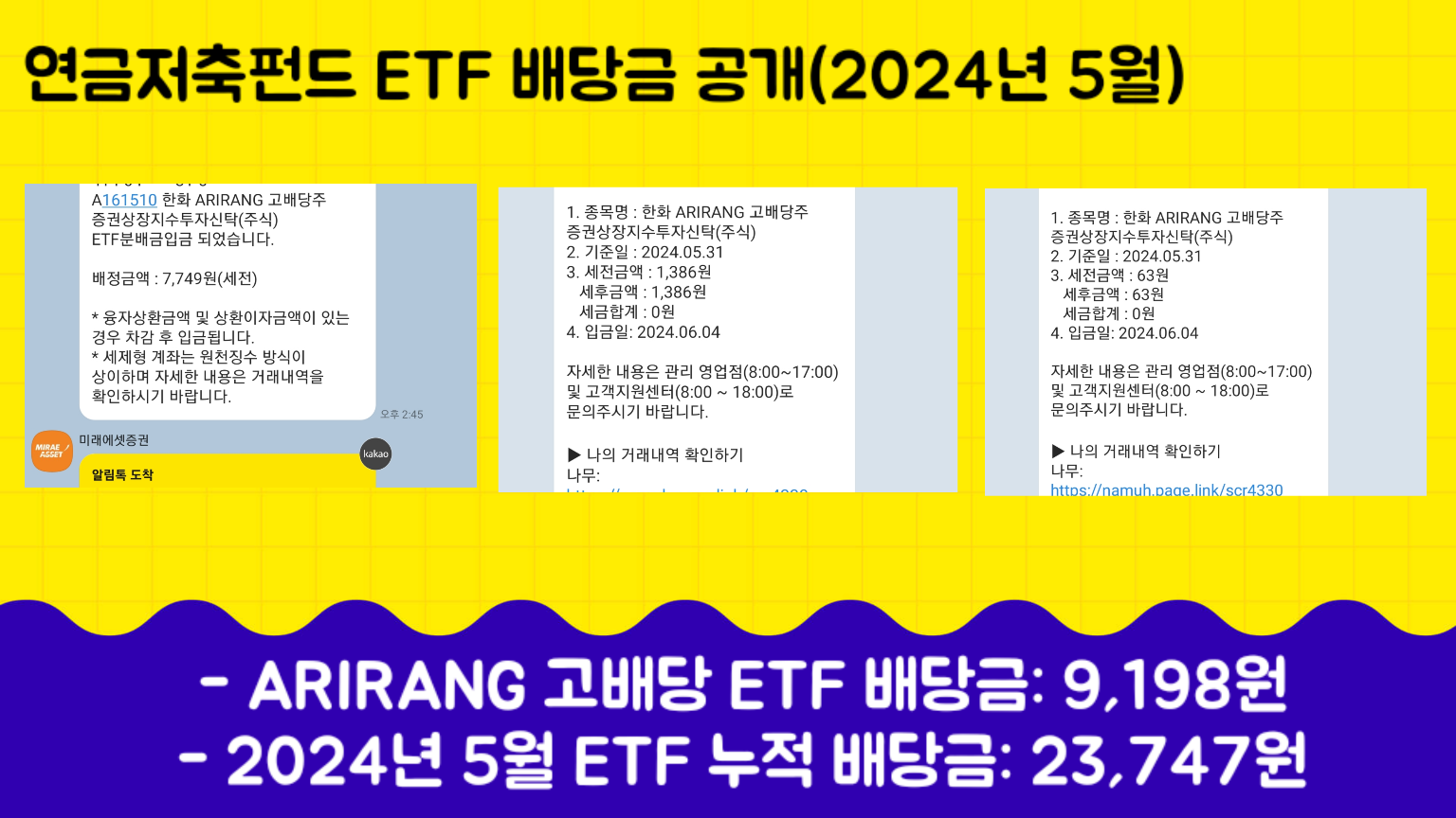 2024년 4월달부터 연금저축펀드 ETF 배당금을 정리하기 시작하였습니다. 과연 얼마의 배당금이 들어올까 궁금함과 함께 정리를 해 놓을 필요가 있어서 유튜브와 블로그에 기록으로 남기기로 했습니다.