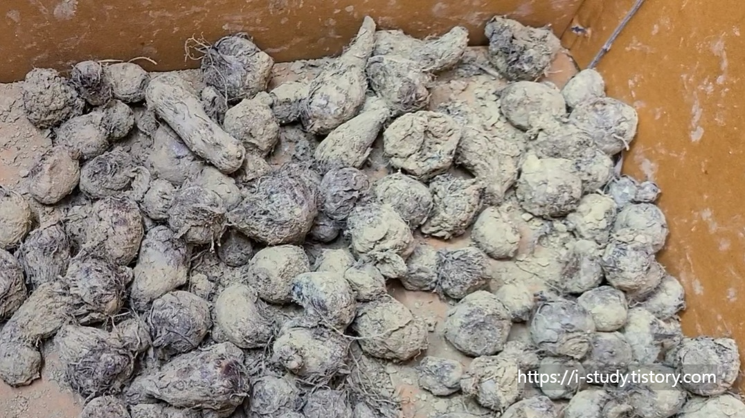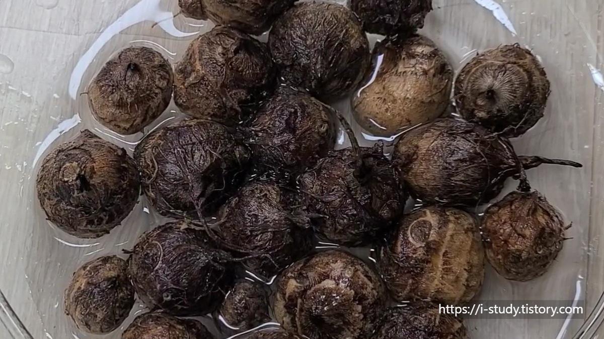 씻은 토란을 넣고 토란이 반 정도 잠길 정도로 물을 넣었습니다. 토란이 예쁘게 잘 자랐으면 좋겠습니다.