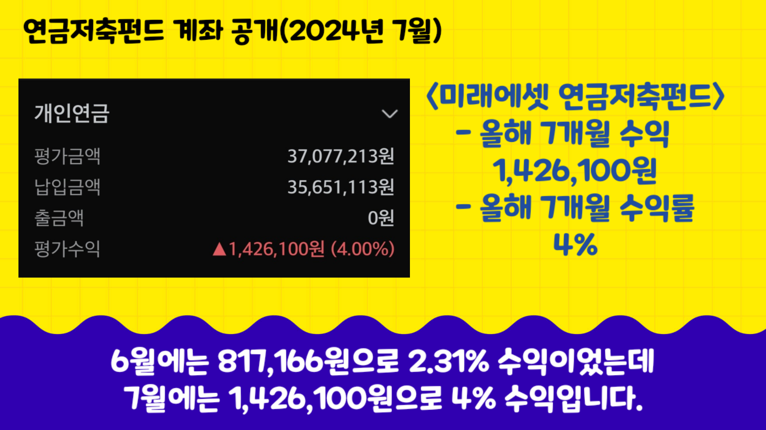 - 미래에셋 연금저축펀드 올해 7개월 수익: 1,426,100원