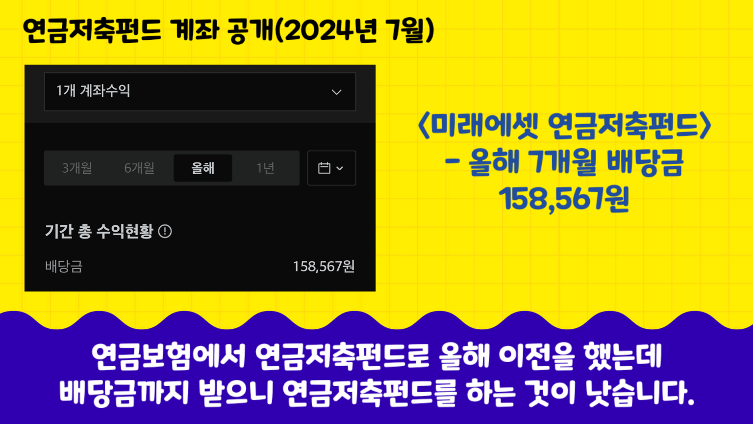 - 미래에셋 연금저축펀드 올해 7개월 배당금: 158,567원