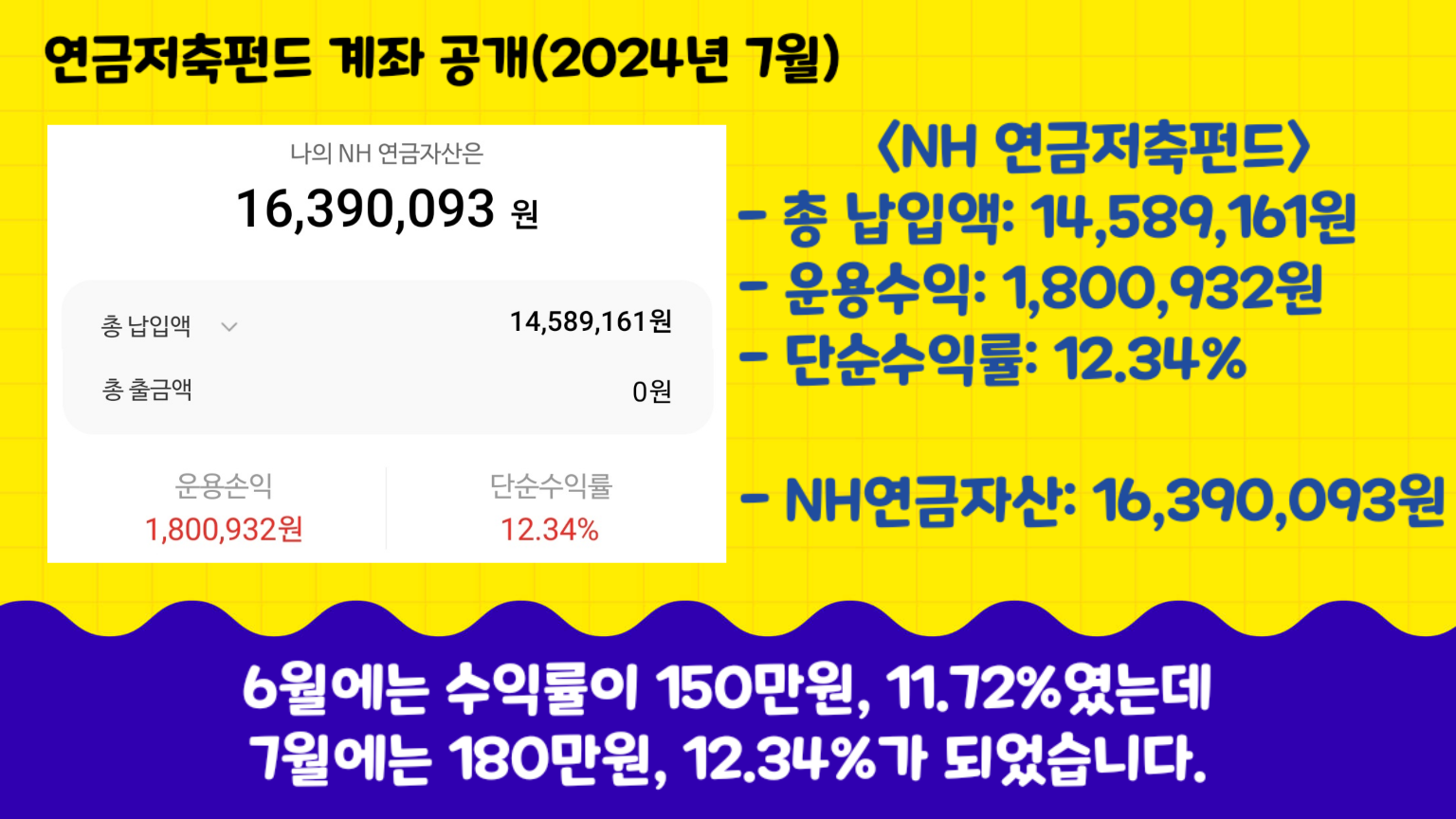 6월에는 수익률이 150만원, 11.72%였는데 7월에는 180만원, 12.34%가 되었습니다.