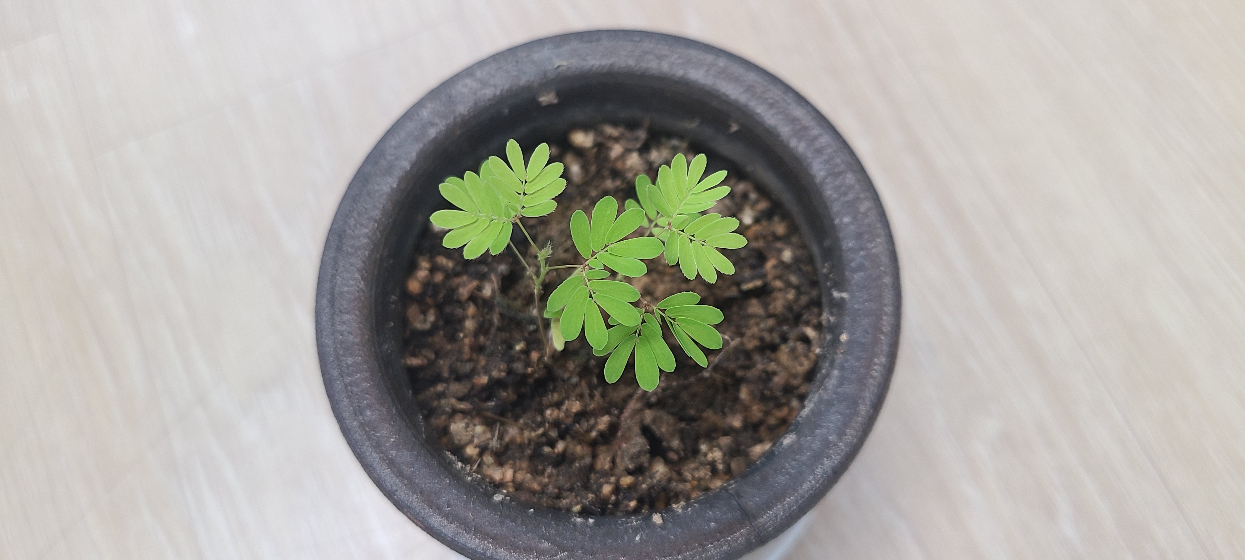 화분도 예쁘고 미모사(신경초)도 신기합니다. 교장선생님께서 주신 망고 화분은 죽였는데 이번 미모사는 잘 키워보겠습니다.