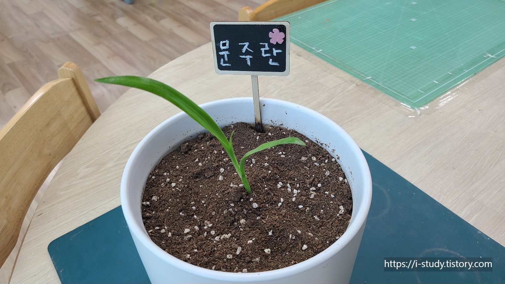 아직 4개월이 지난 문주란이라서 조금 큰 싹에 가깝습니다. 지금 이 학교에서 계속 근무하면서 키우면 꽃을 볼 수 있을까요?