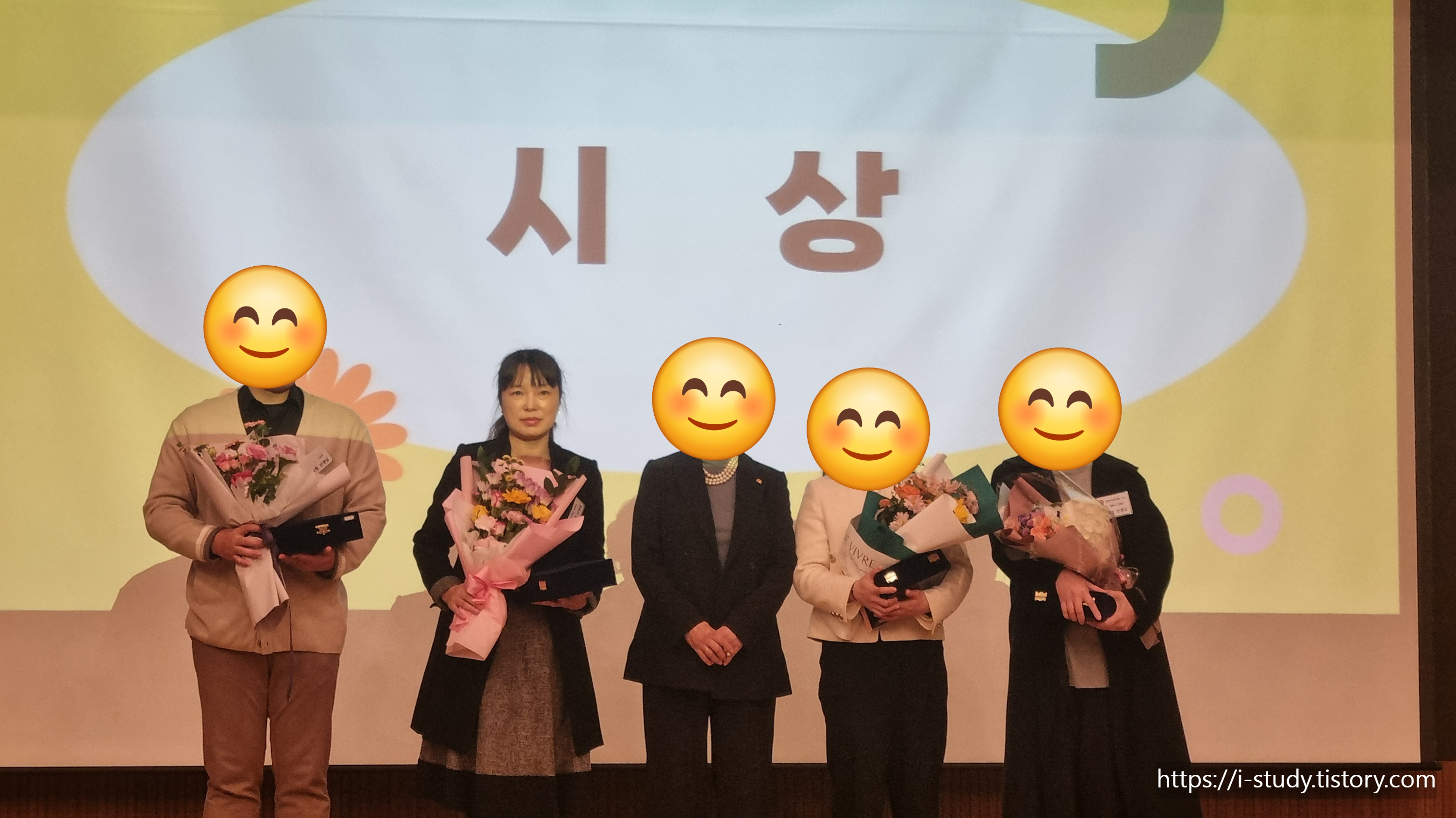 상을 받고 다른 지도교사와 함께 기념사진도 찍었습니다. 사진 찍을 때는 웃자.^^