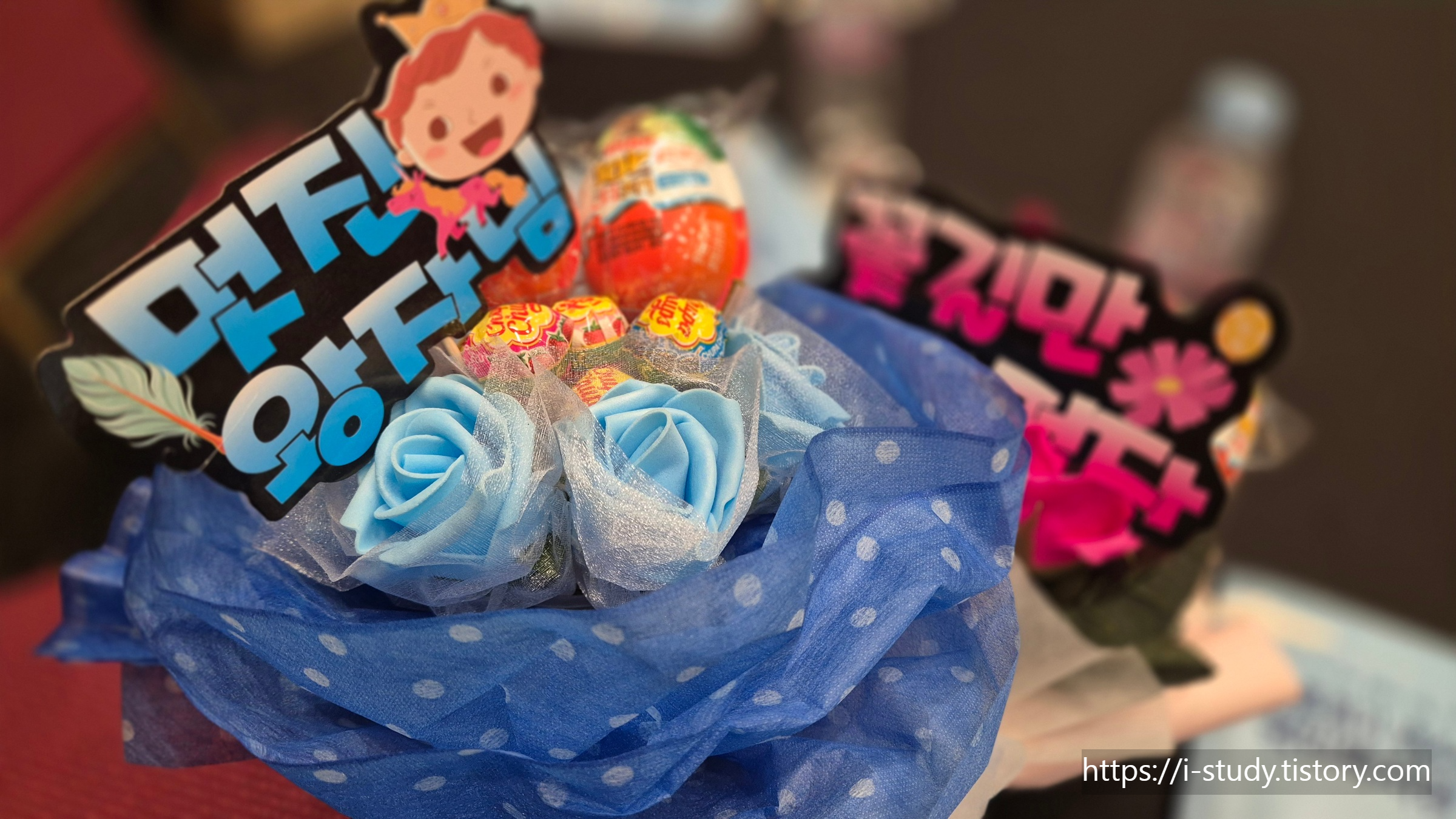 생화를 준비하고 싶었지만 가격과 가성비를 고려해서 킨더조이 사탕 꽃다발은 준비했습니다.