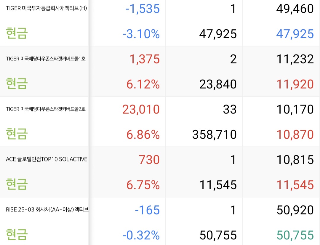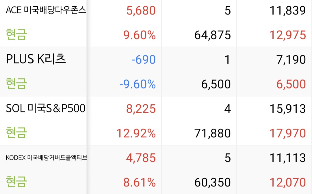 배당금을 주는 ETF 위주로 넣어두었습니다. 1년 뒤 열어본 계좌에 놀란 하루였습니다.