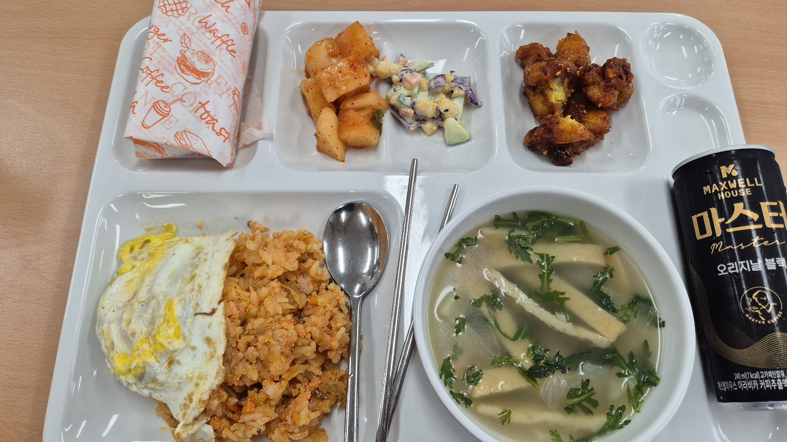 1일차 저녁으로 나온 급식입니다. 커피는 영재강사 선생님이 감*영선생님께서 챙겨주셨습니다. 영재수업을 하면서 감** 선생님을 알게 되었습니다.