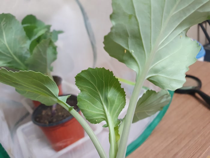 일곱 마리 애벌레가 세 개의 케일화분을 다 먹어가네요.