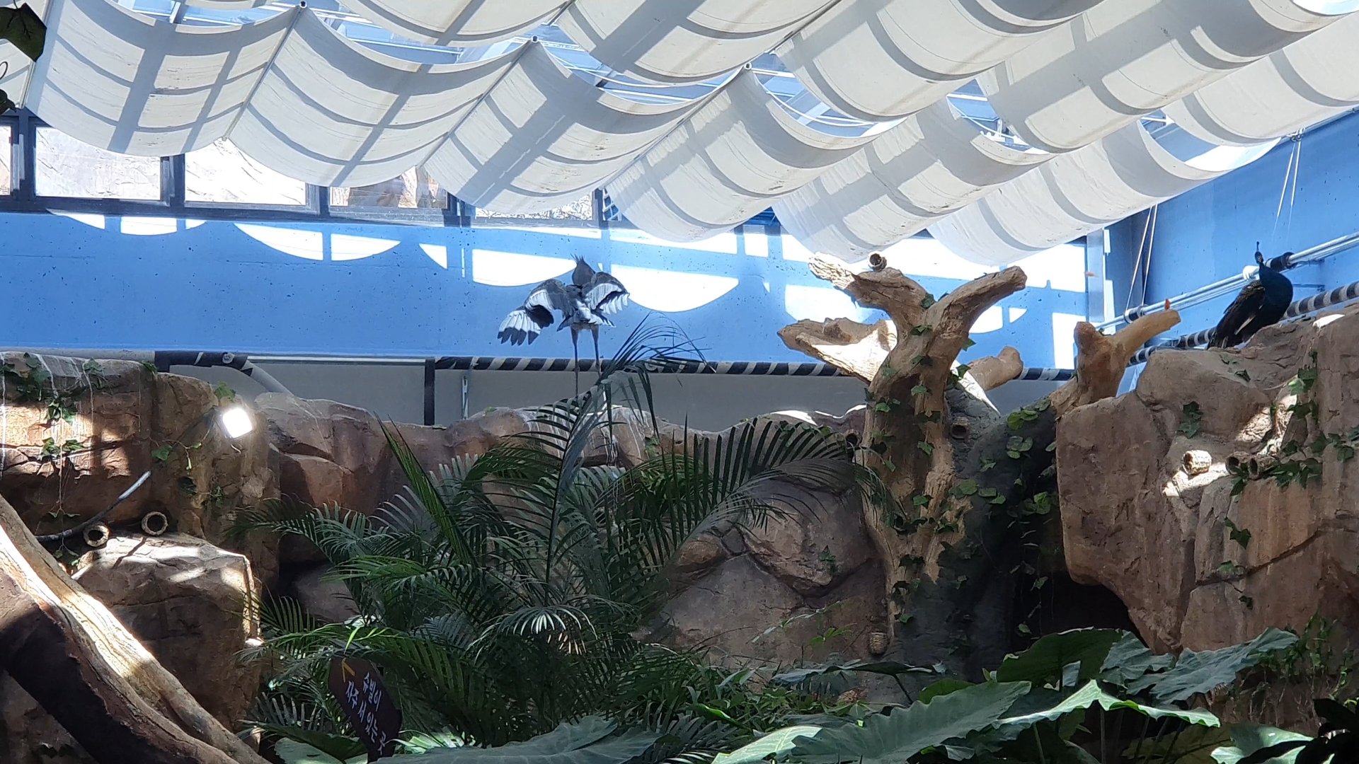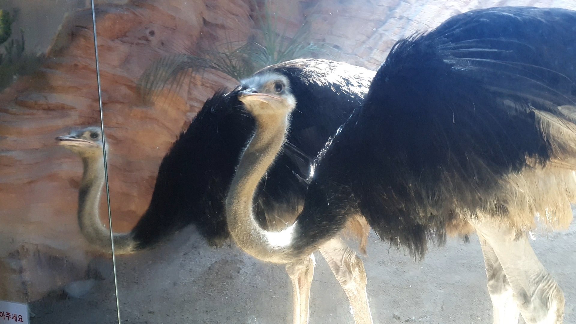 타조가 자꾸 유리창을 치네요.
