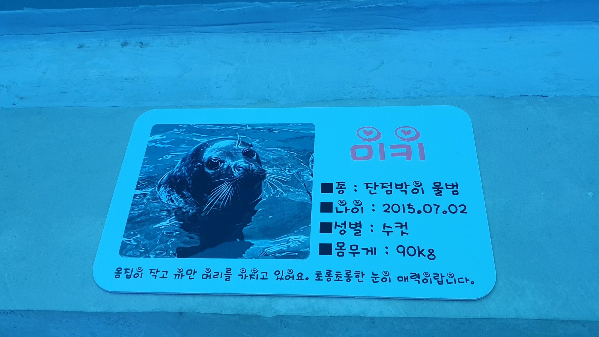 물범의 이름은 미키이네요. 초롱초롱한 눈이 예쁘네요.