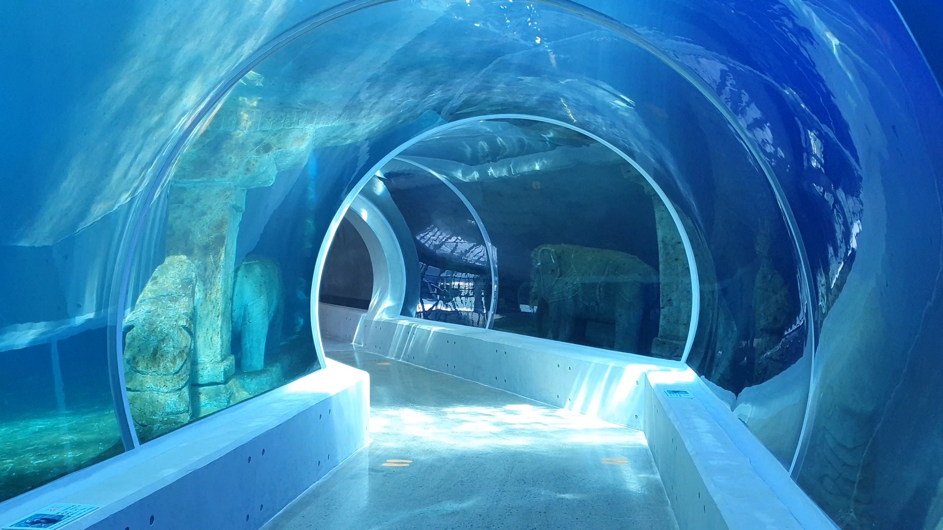 이 아쿠아리움은 자연광으로 친환경을 내세우고 있다고 해요. 자연광이다 보니 해저 터널 안이 선명하게 보이지 않아요.