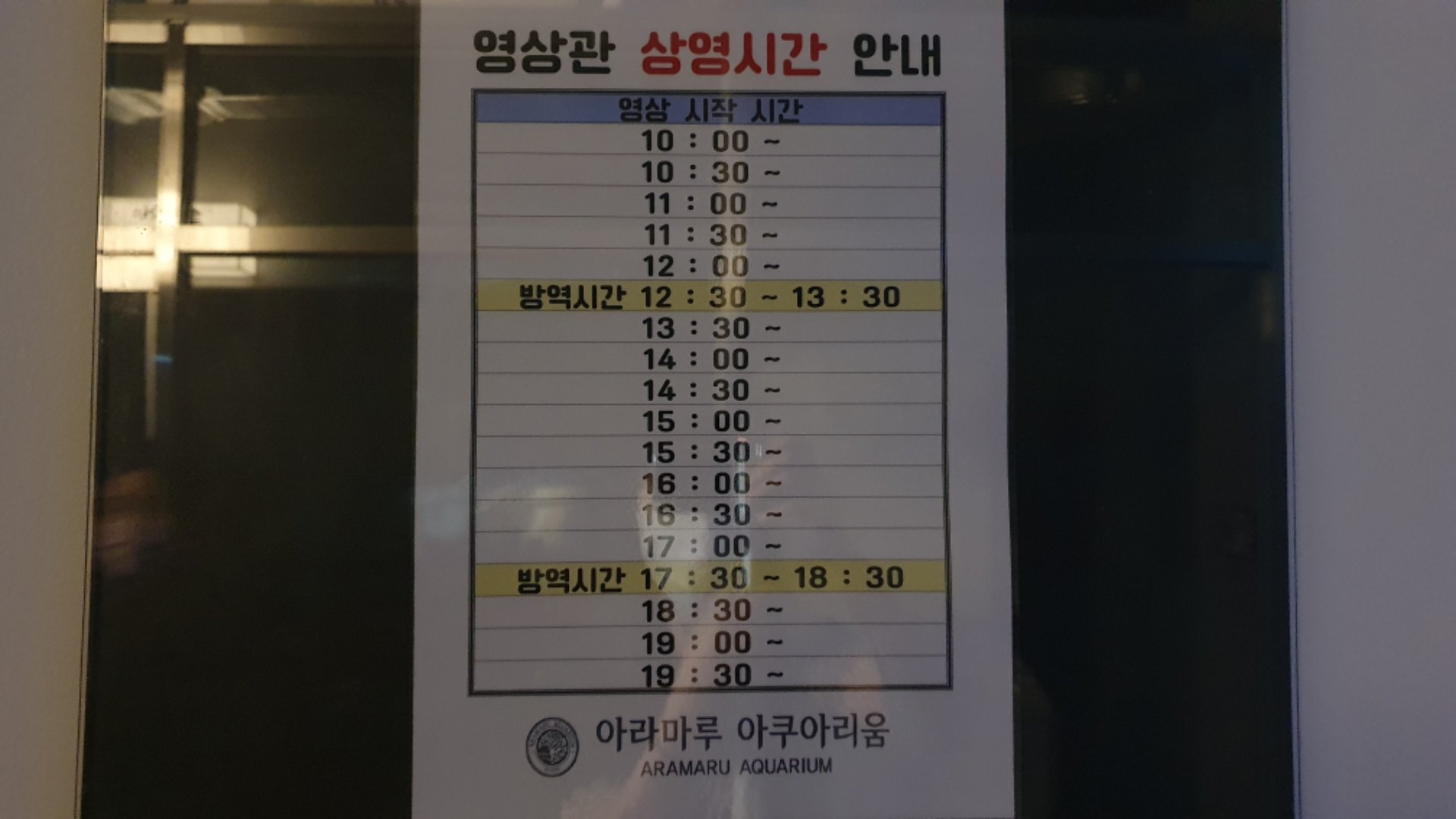 초양휴게소에 차를 주차하고 아쿠아리룸으로 들어갔어요.