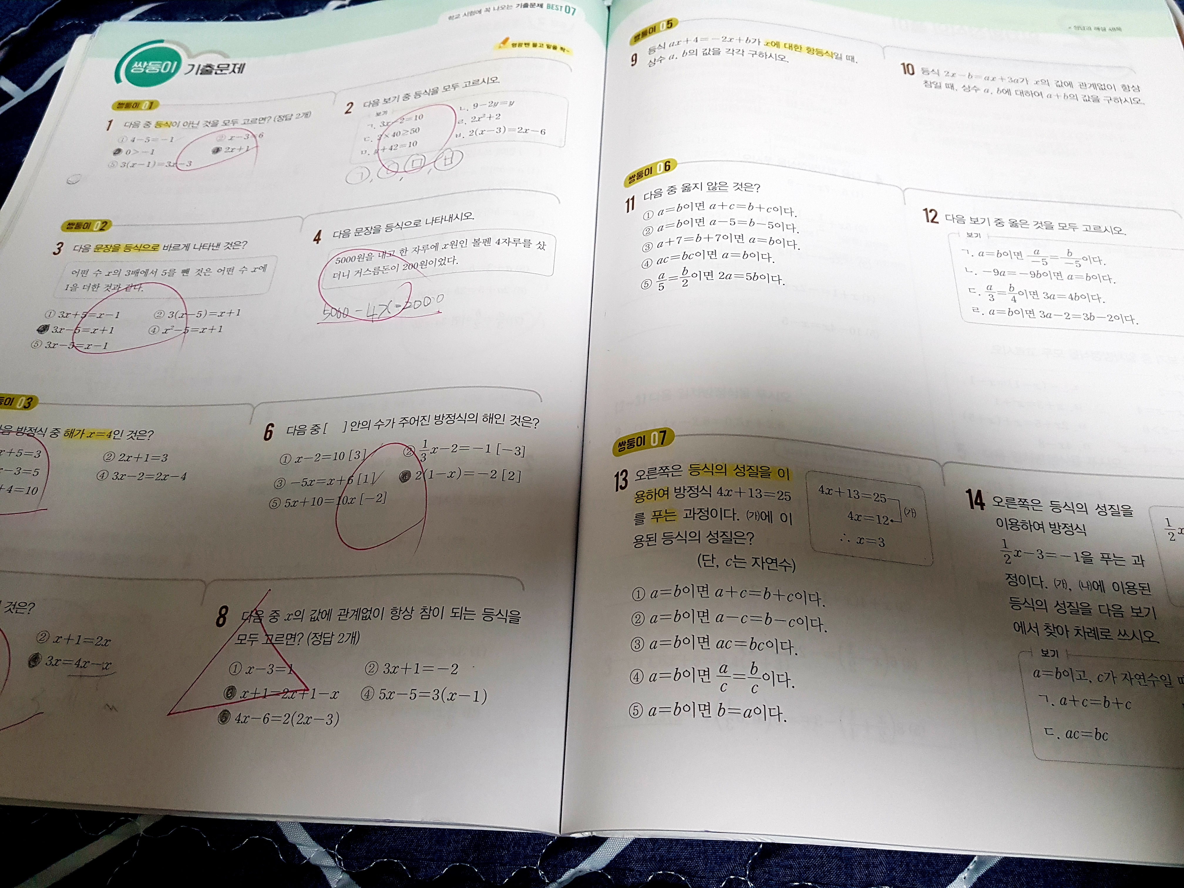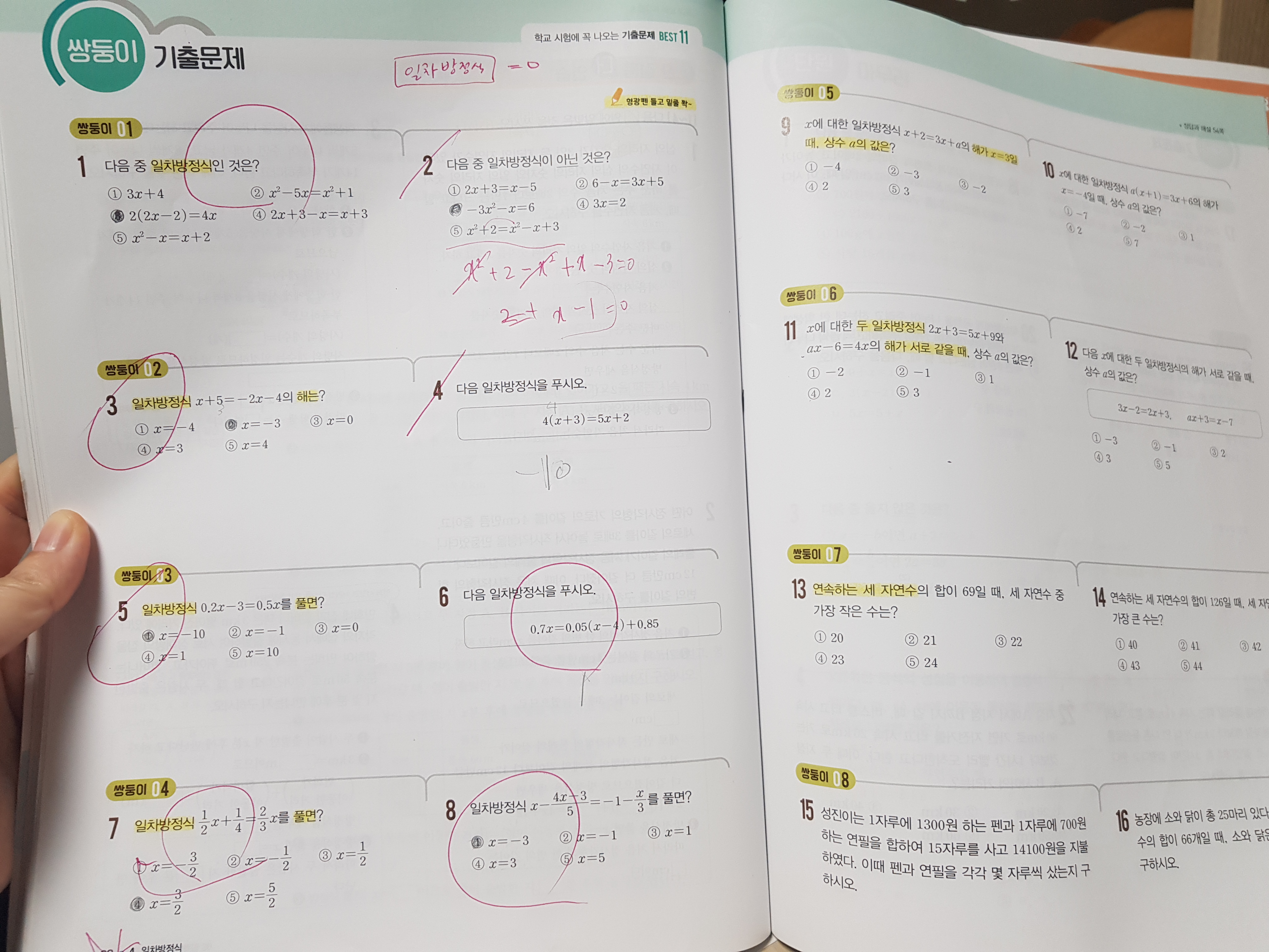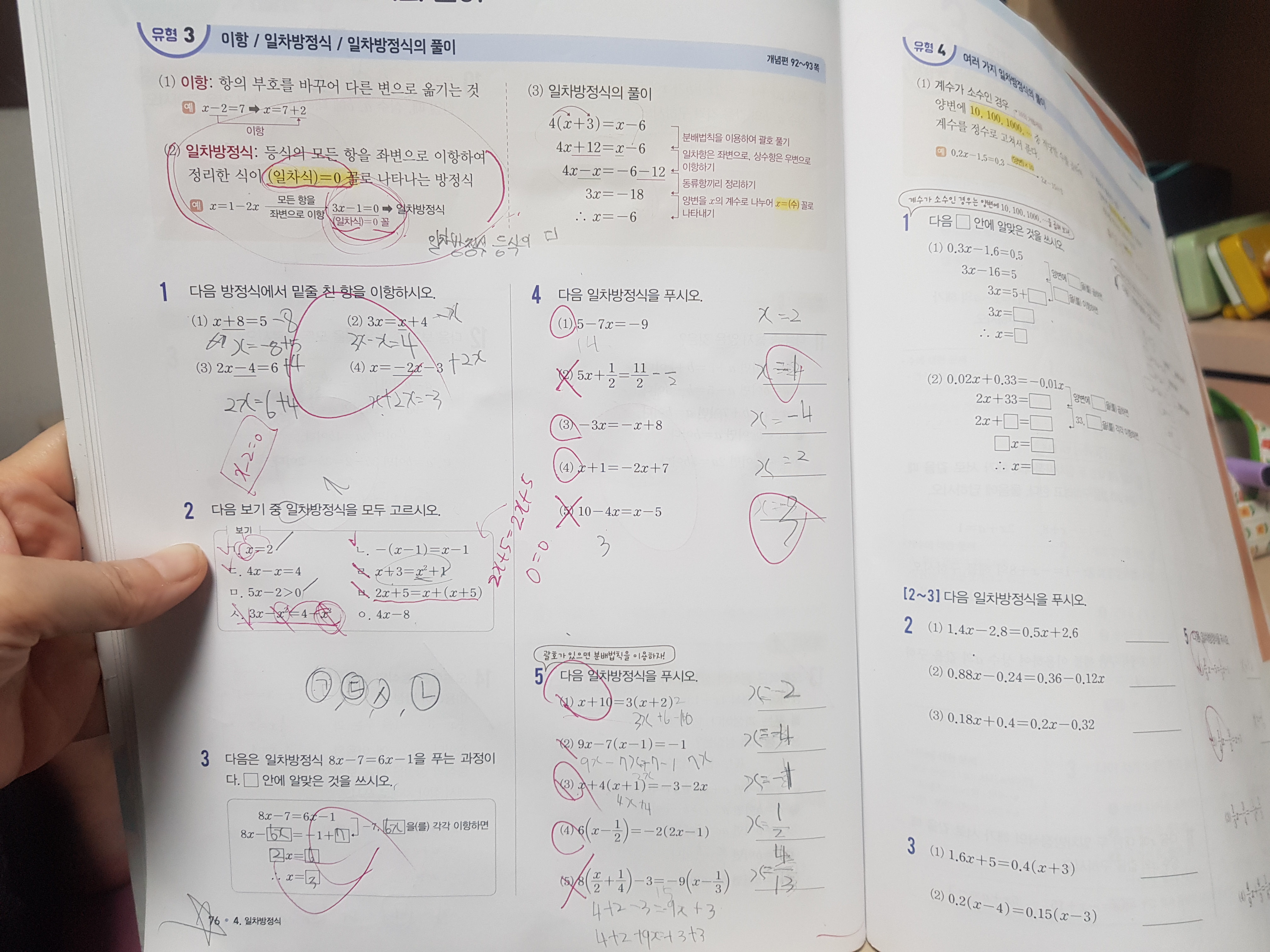 일차방정식을 푸는 것이 쉽지 않은가 봅니다. 10문제 중 4개를 맞았고, 울면서 다시 풀면서 가르쳐주었습니다. 언제쯤 일차방정식을 쉽게 푸는 날이 올까요?