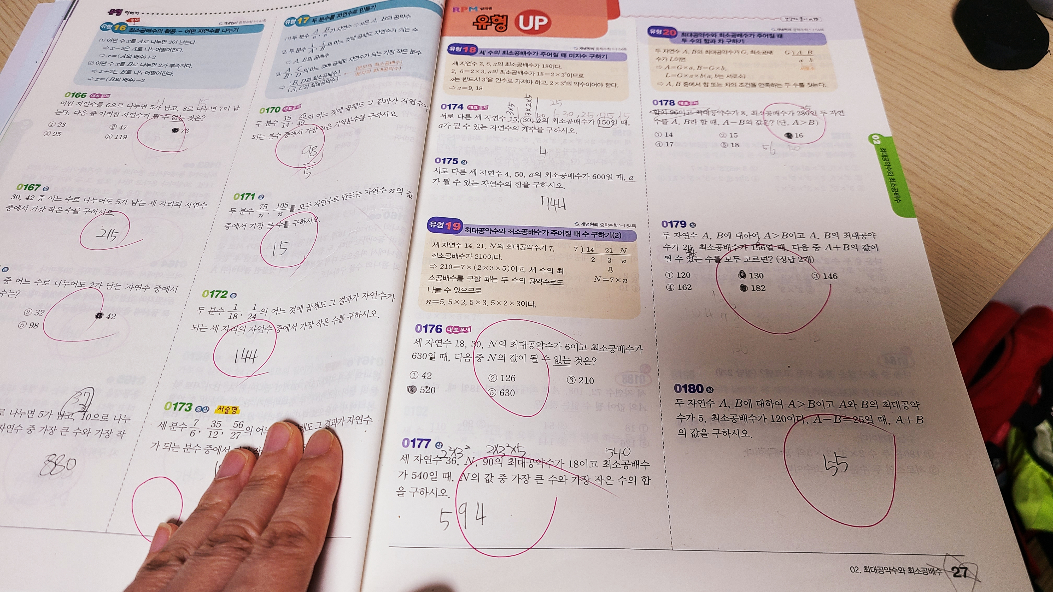 -개념원리 알피엠: 1단원 유형 UP을 한 바닥 풀었어요. 1단원은 괜찮게 푸는 딸아이입니다.