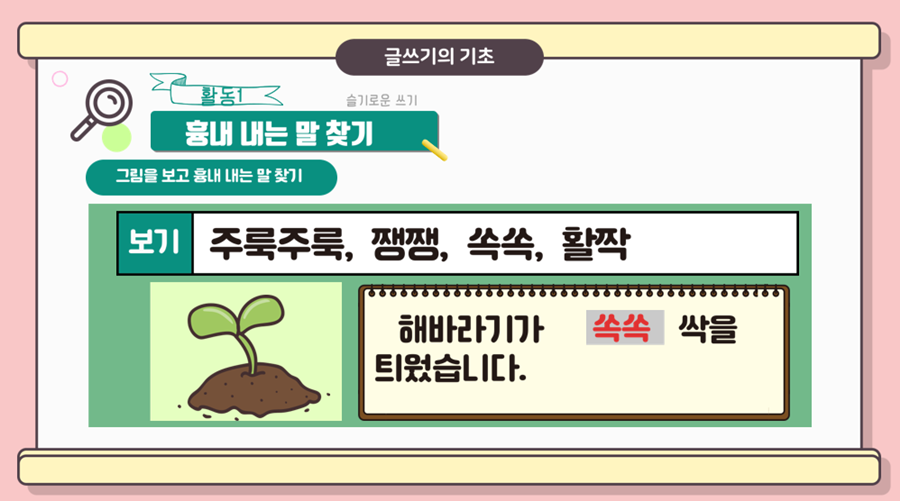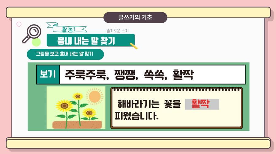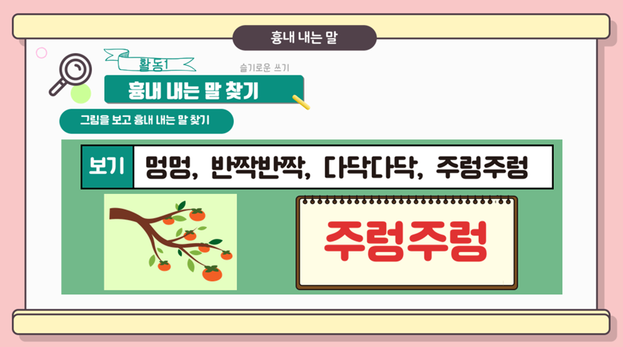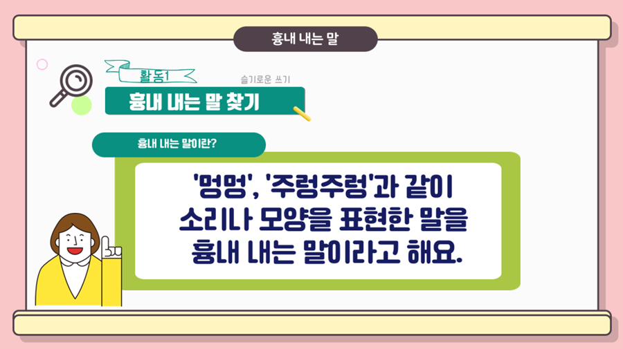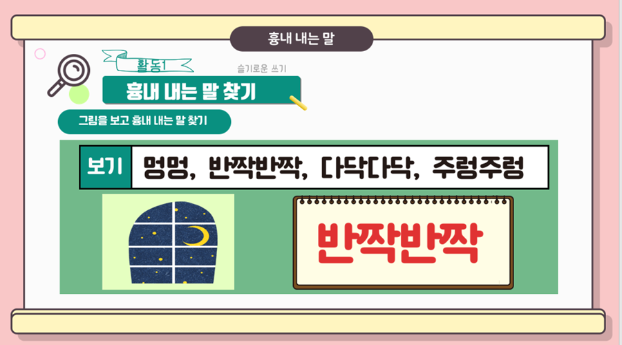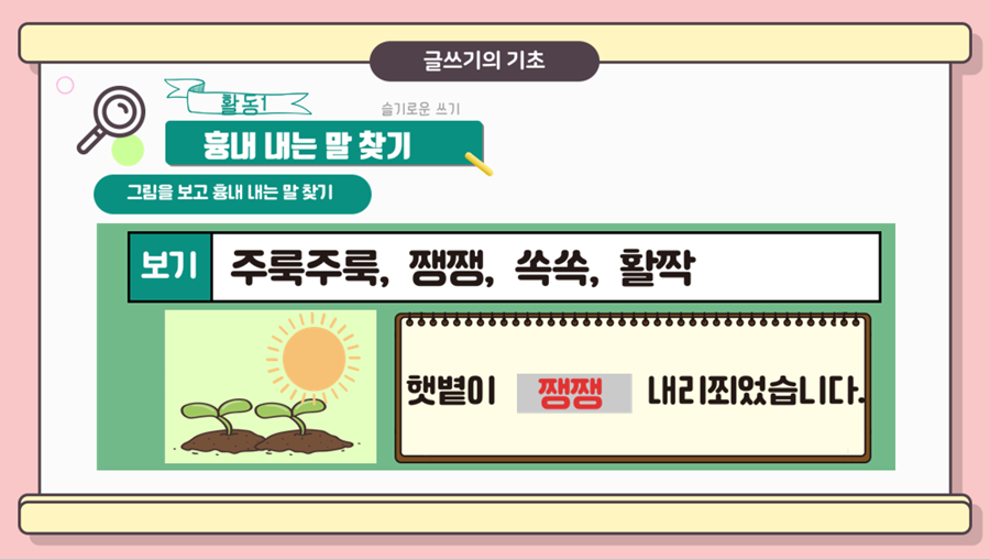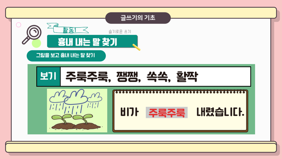 - 활동3: 흉내 내는 말을 넣어 짧은 글 쓰기