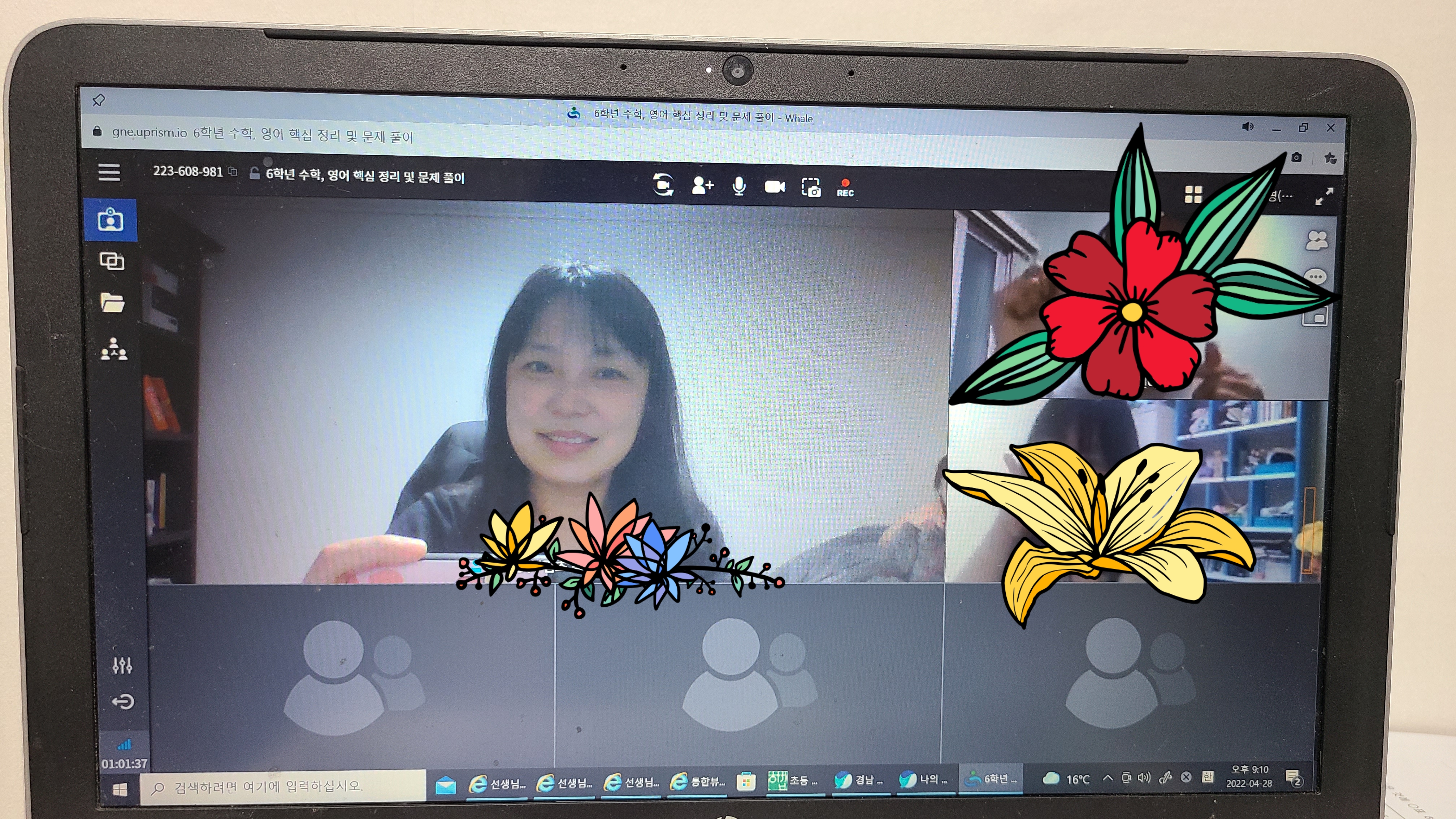 엄마는 학교 밖 누리교실로 오후 8시 20분~9시까지 열정박샘으로 6학년 수학, 영어 4번째 수업을 하였습니다.