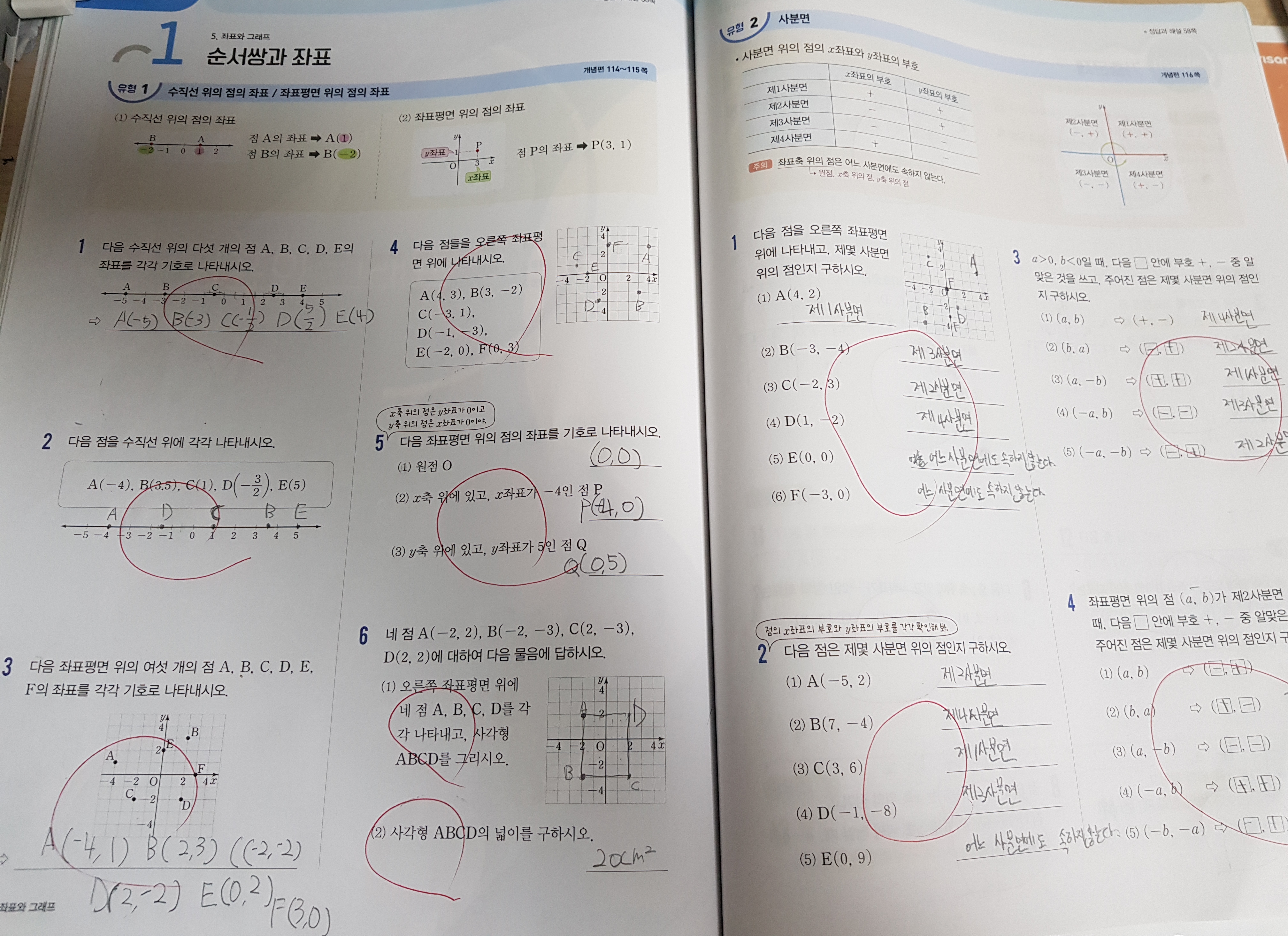 좌표와 그래프 단원에서 순서쌍과 좌표는 매우 잘하는 면모를 보입니다.