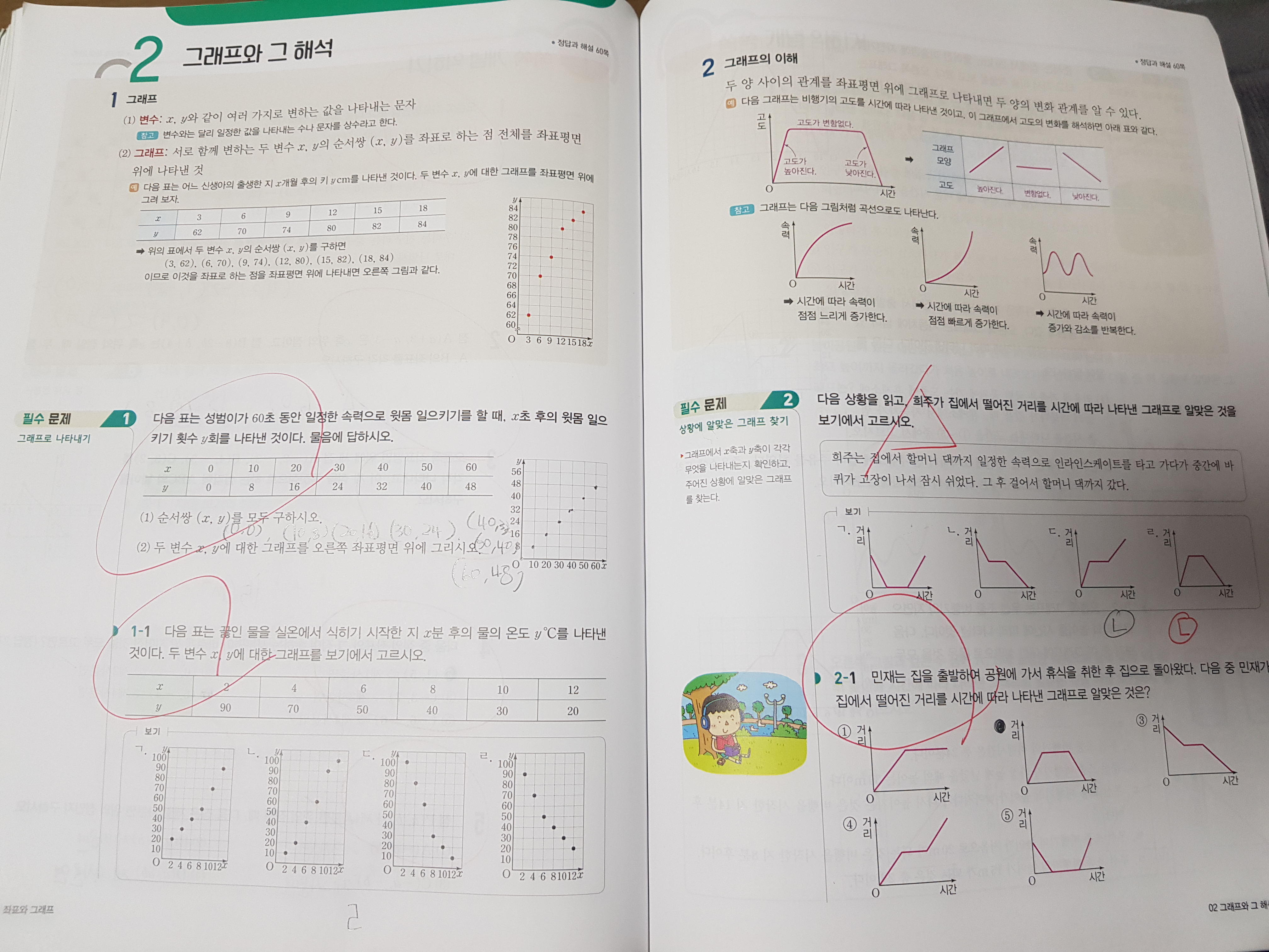 학교 밖 누리교실 수업을 끝내고 딸아이와 수학을 푸는 시간. 좌표와 그래프이기에 설명을 해 줄 것이 없습니다. 틀린 문제 한 문제만 잡아주면 됩니다.